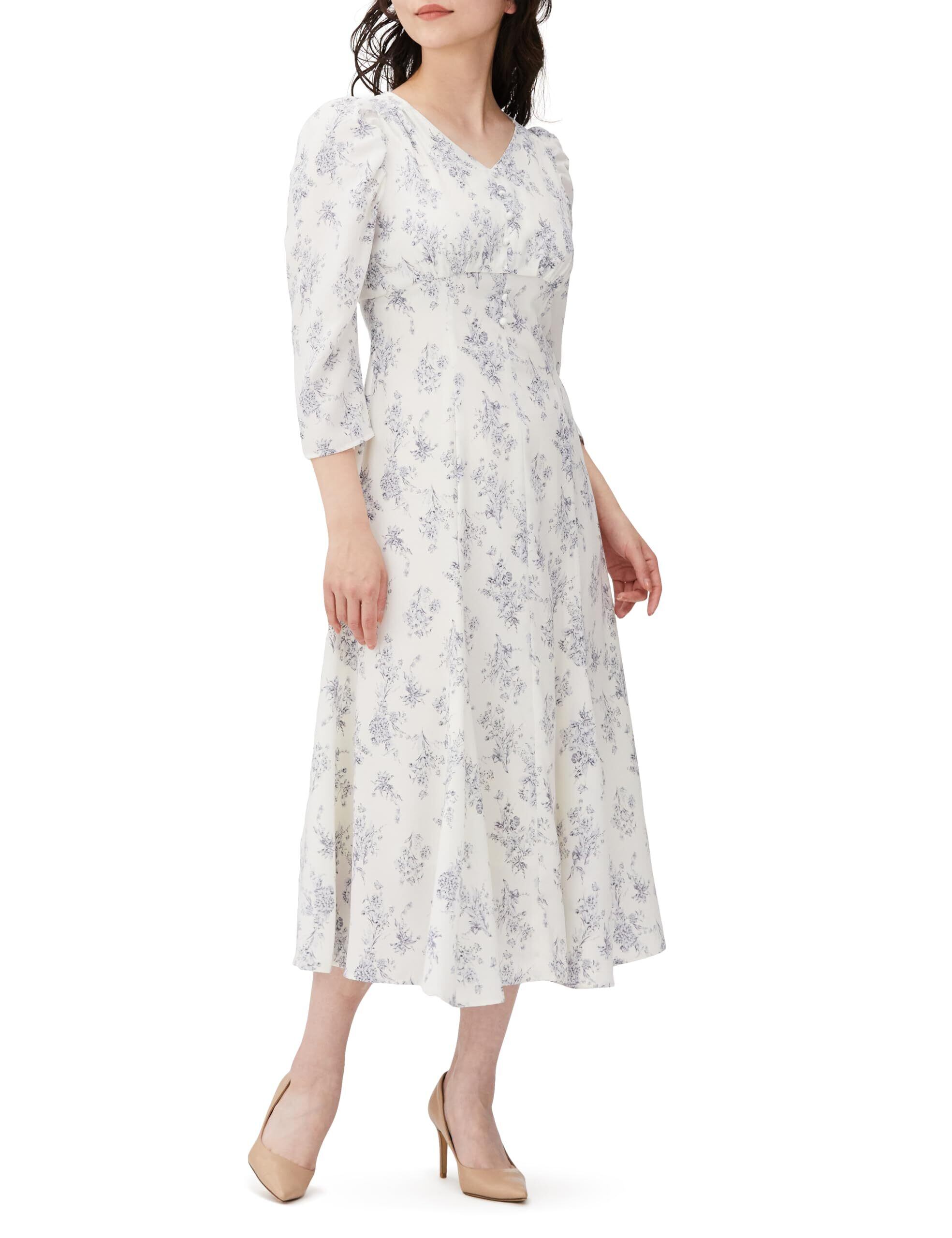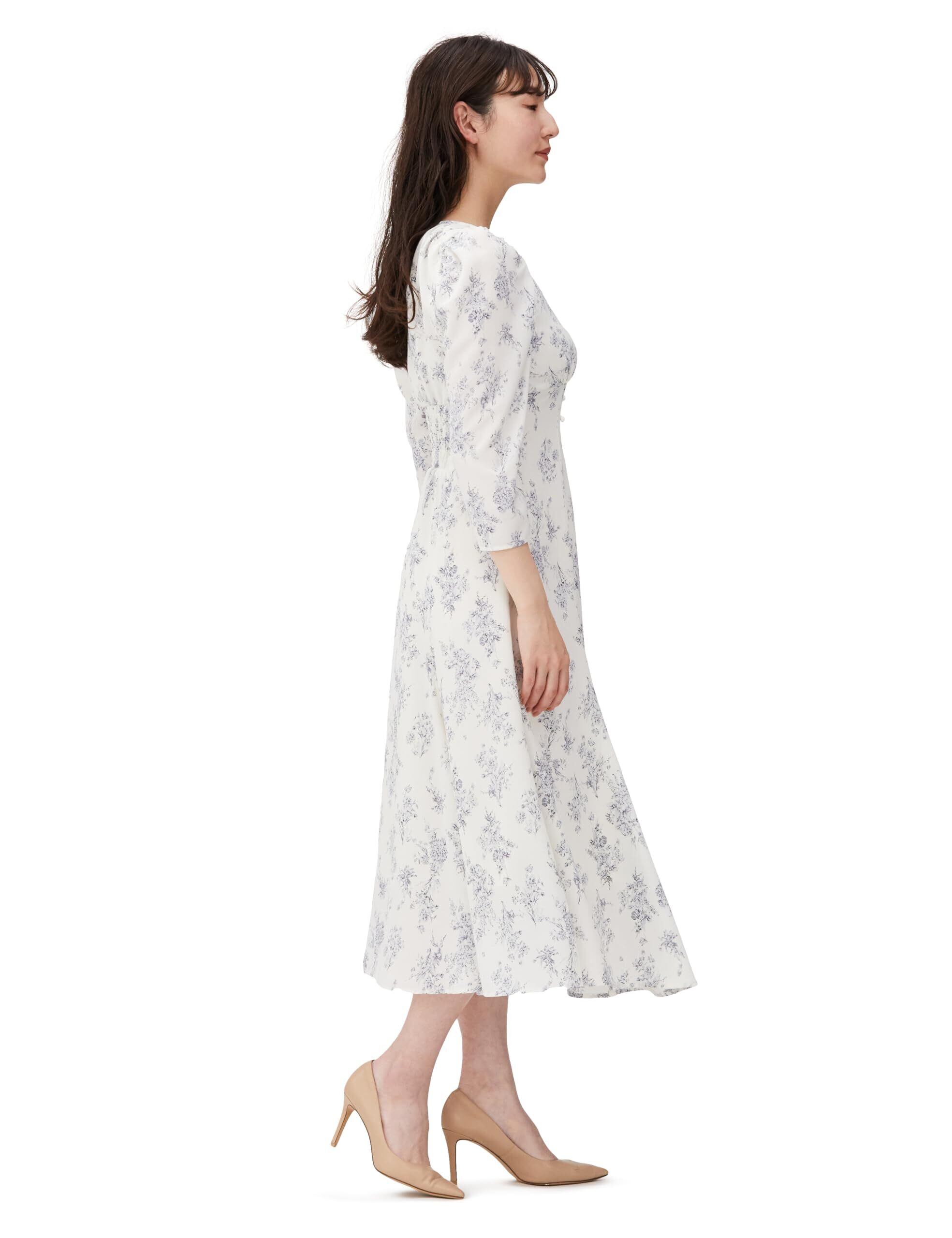 繊細なフローラル柄がやわらかい印象を与えるワンピース