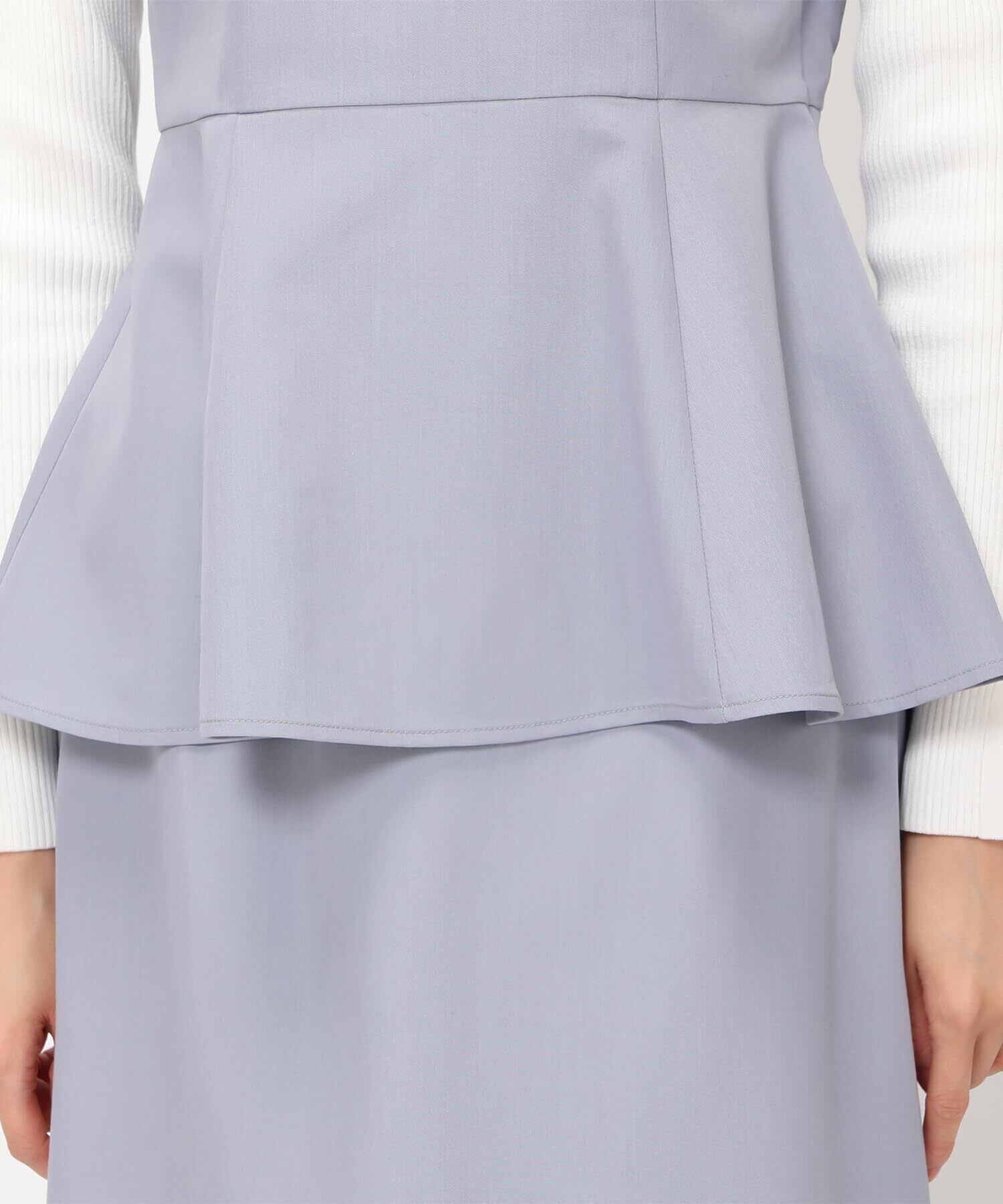 リブ生地とペプラムビスチェのレイヤード風デザインがおしゃれなポイント。