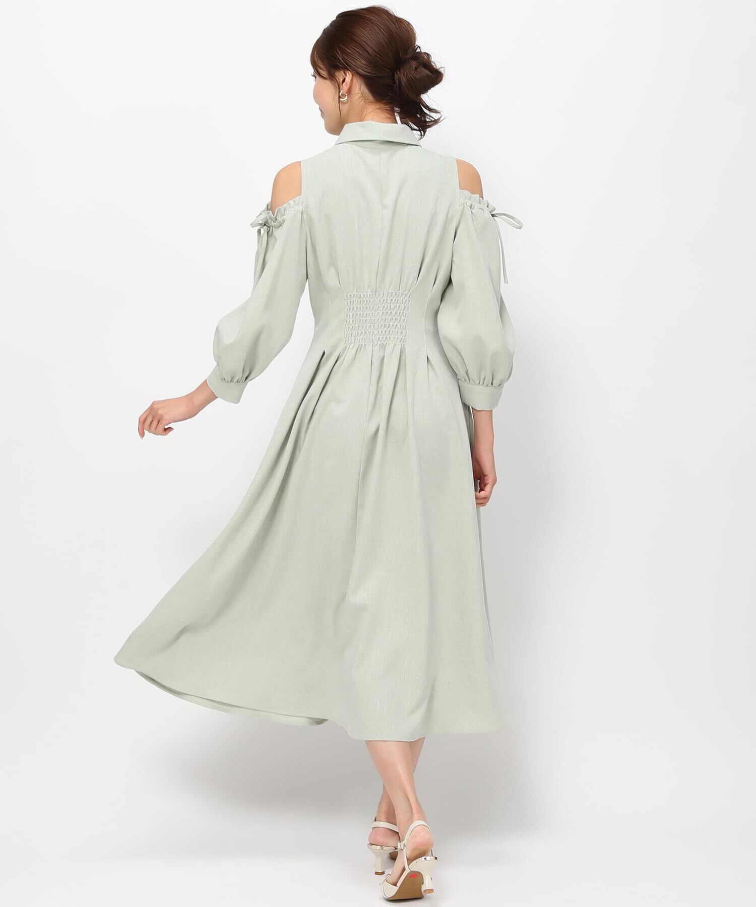 ショルダー部分のカットアウトがさりげない抜け感を演出するワンピース。