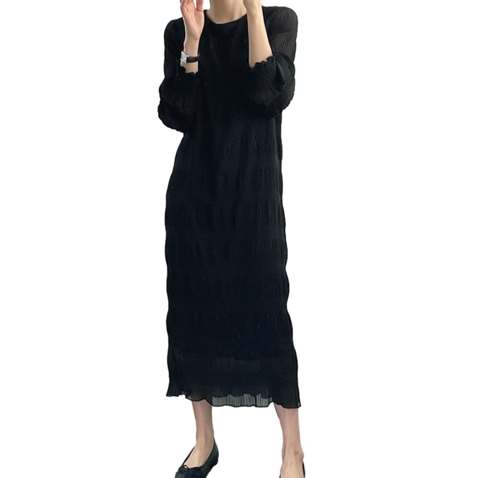 【在庫処分】[OGCPWYQZ] ワンピース ロング シフォン レディース プリーツ パフスリーブ 裏地付き 長袖 着痩せ おしゃれ ドレス パーティー カジュアル 結婚式 通勤 きれいめ 春 夏 秋 | BOSSO