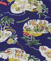 ハワイの自然や伝統を描いたチャプスイ柄のシャツワンピース