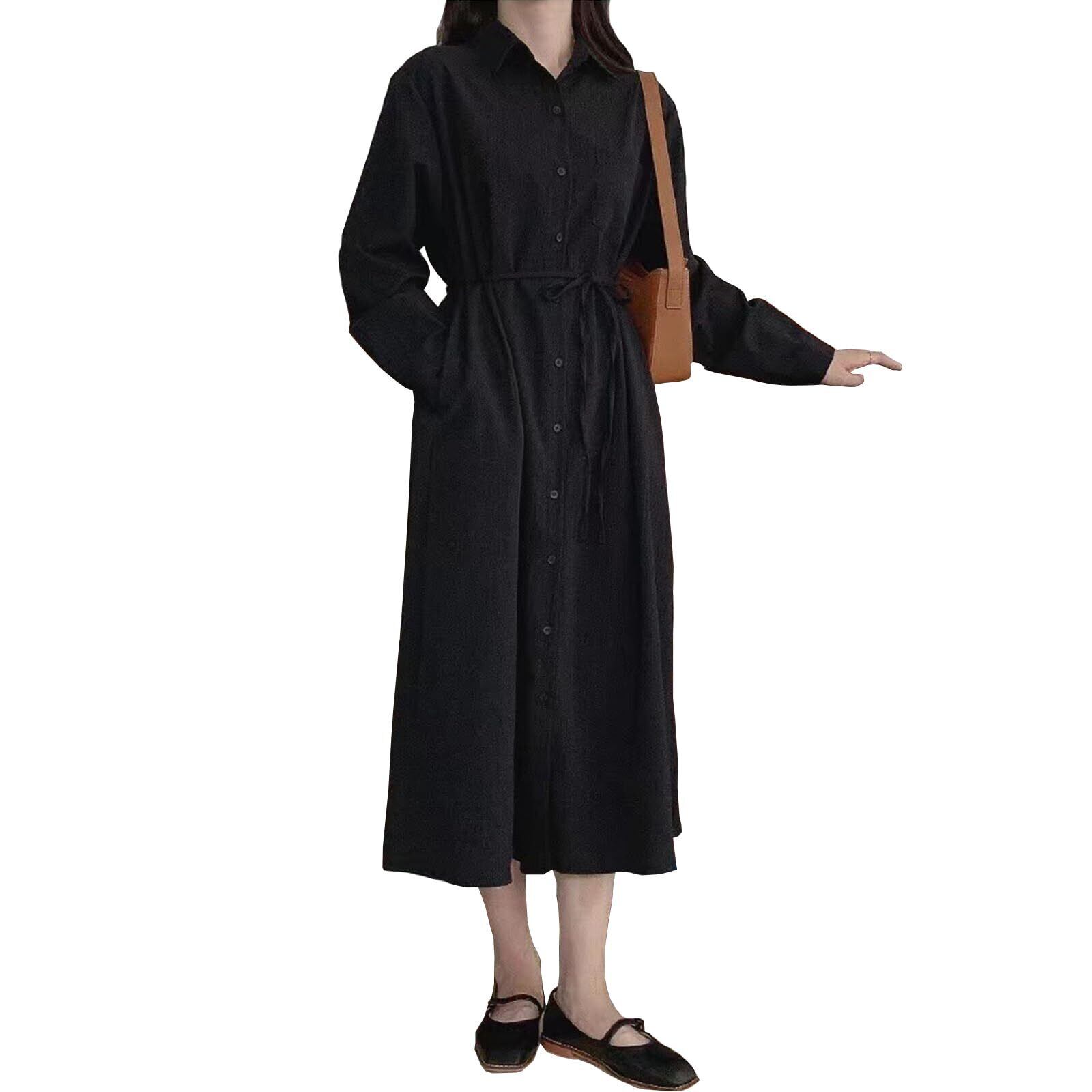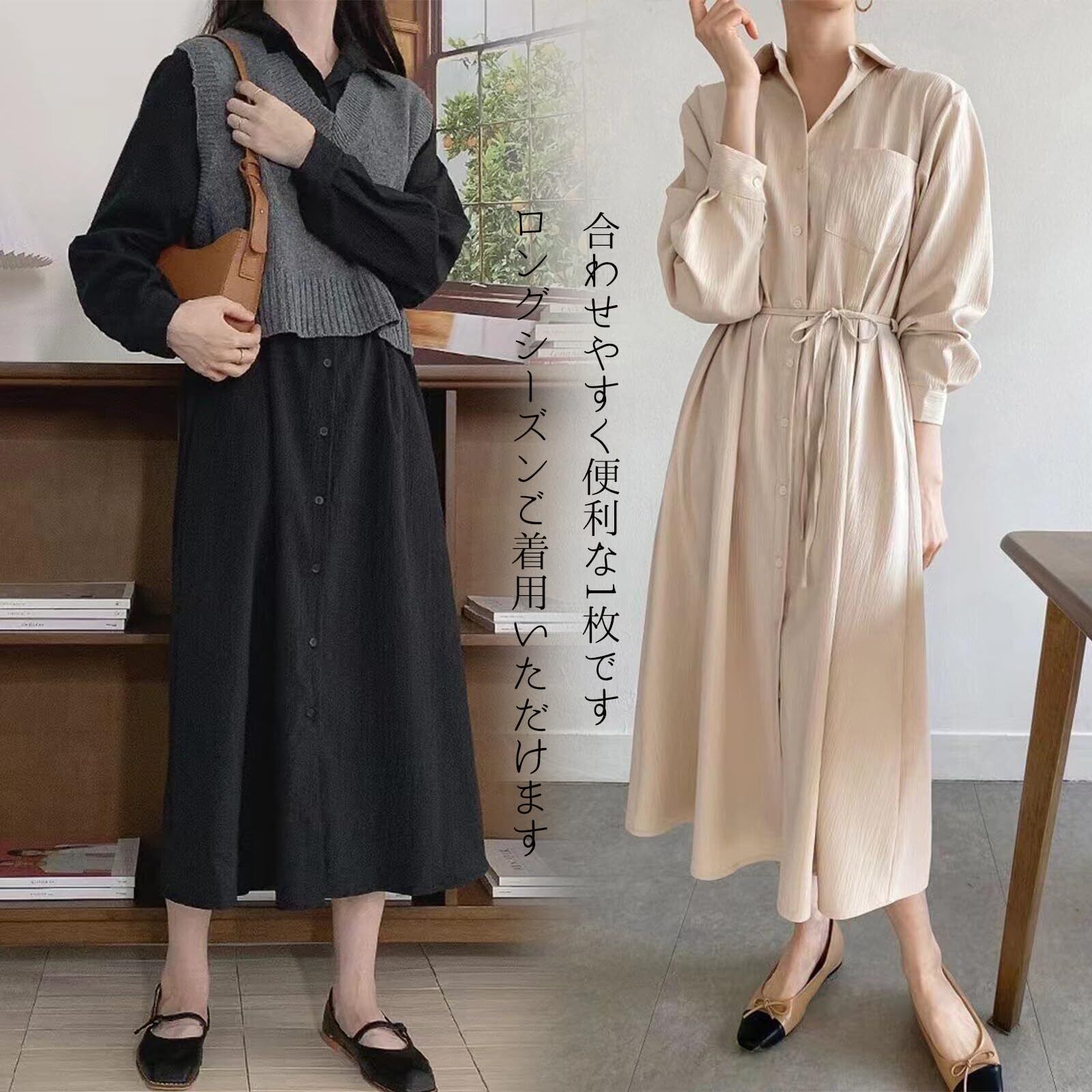 [OGCPWYQZ] シャツ ワンピース ロング レディース 長袖 前開き ボタン 着痩せ おしゃれ ドレス パーティー カジュアル 結婚式 通勤 きれいめ 春 夏 秋
