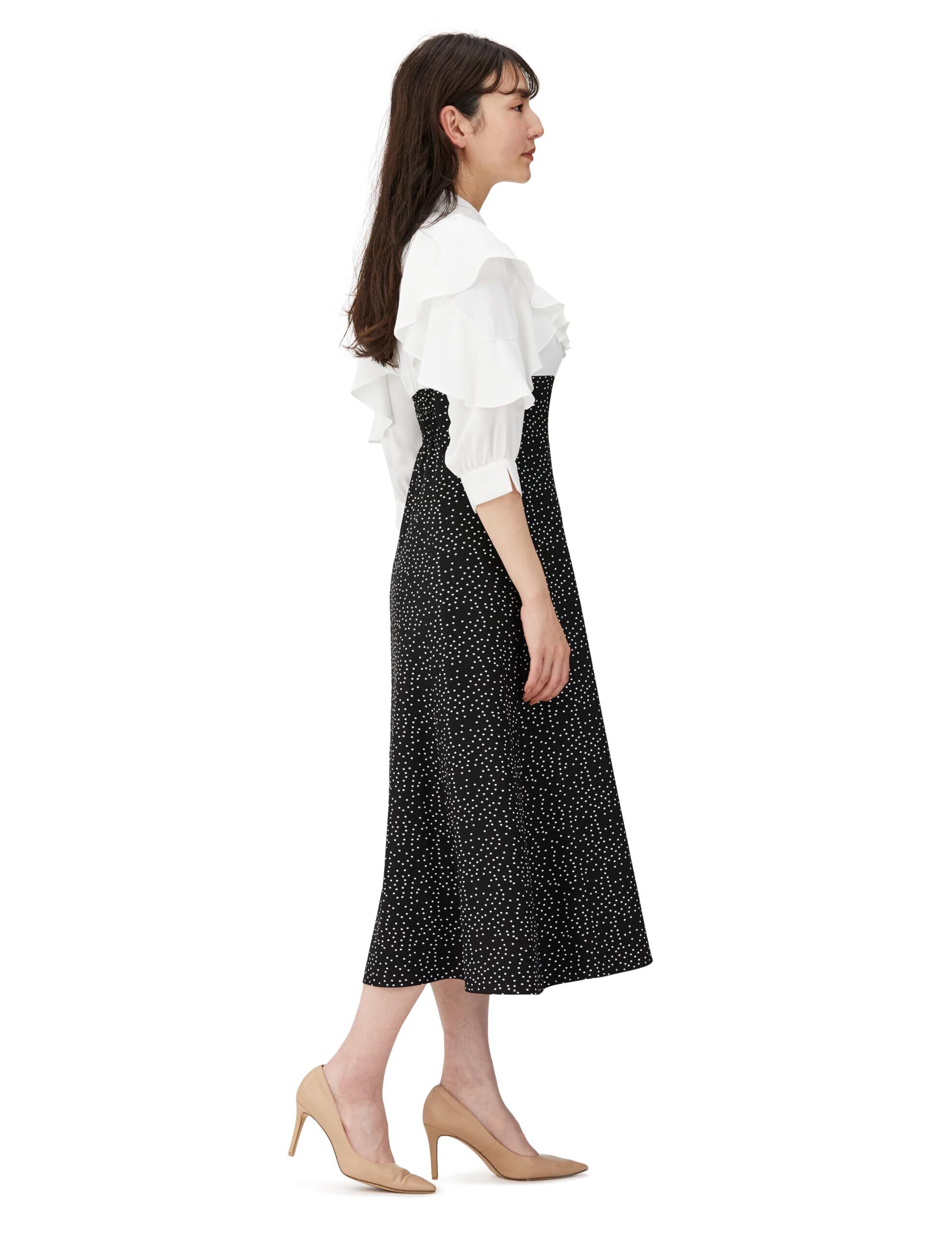 裾に向かって広がるシルエットが女性らしい揺らめきをプラス。