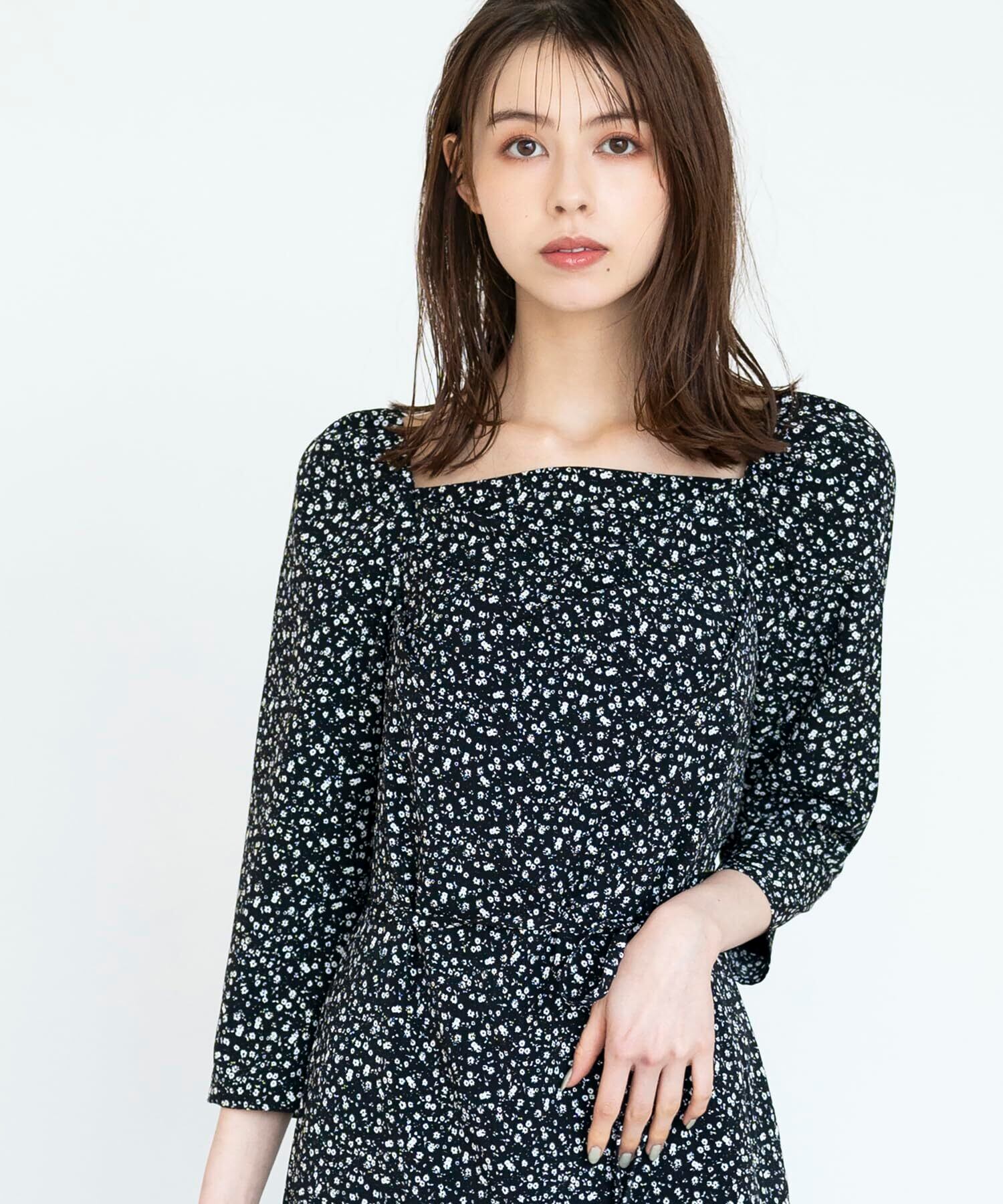 繊細な小花柄がたっぷりと描かれたワンピース。