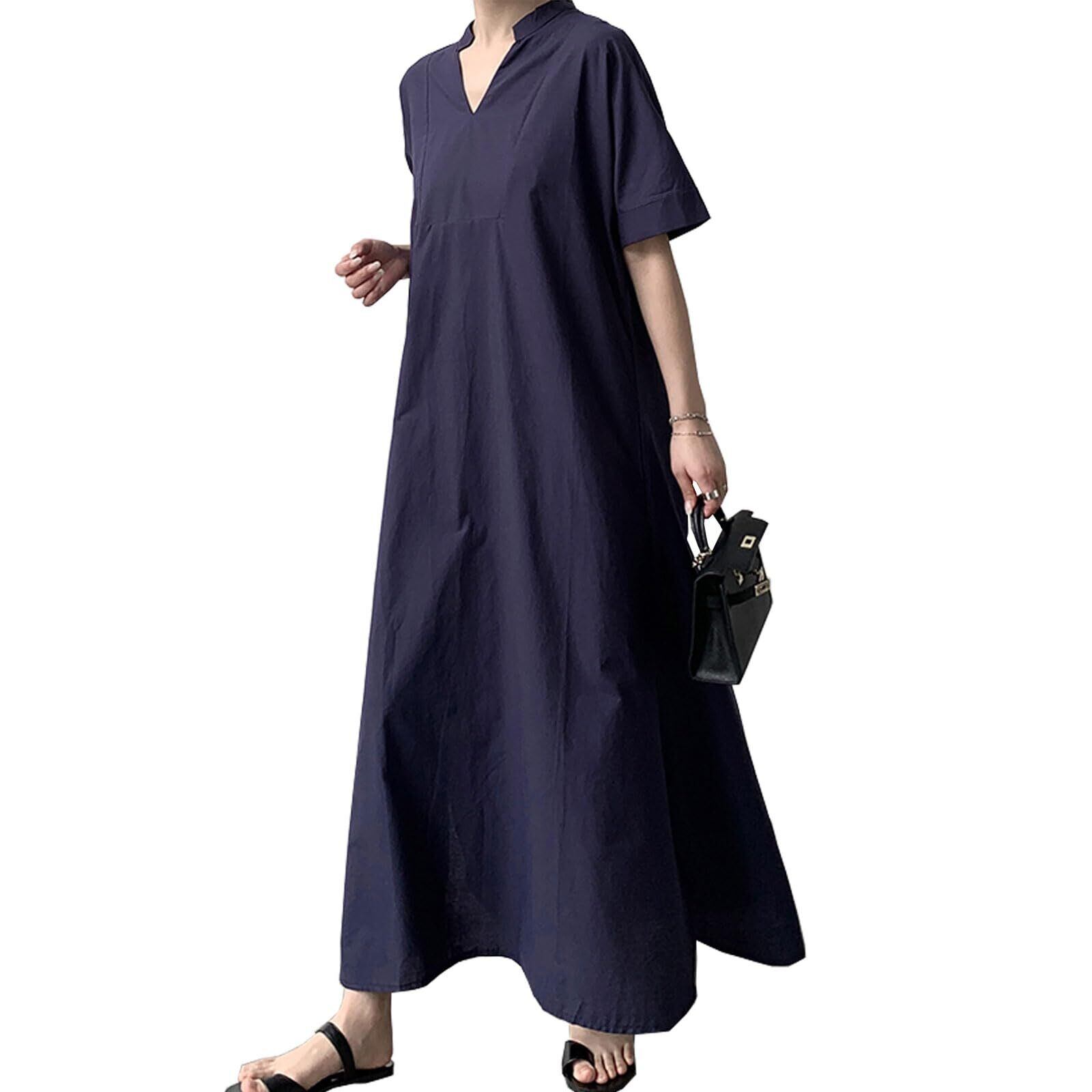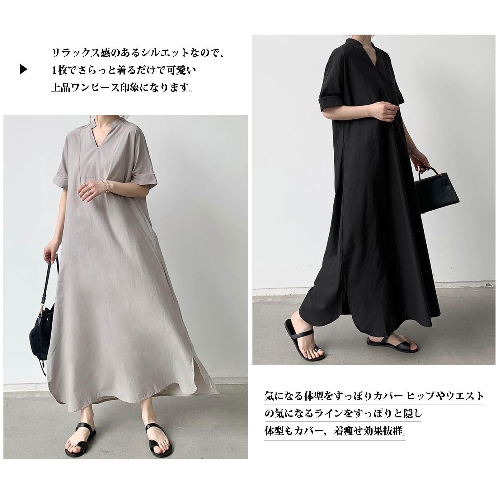 【新着商品】[CoeFodMavo] ワンピース レディース 半袖 Vネック ロングワンピース スリット 体型カバー 大人 上品 可愛ら オーバーサイズ ゆったり 無地 着痩せ オフィス カジュアル おしゃれ 普段着 通勤 春 夏 | BOSSO