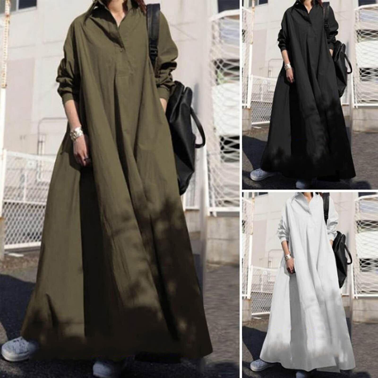 【人気商品】[7-livehouse] ワンピース レディース Vネック ロングワンピース 長袖 大きいサイズ シャツワンピース ゆったり 体型カバー 着痩せカジュアル 無地 ドレス レディース お出かけ 通勤 春秋 | BOSSO