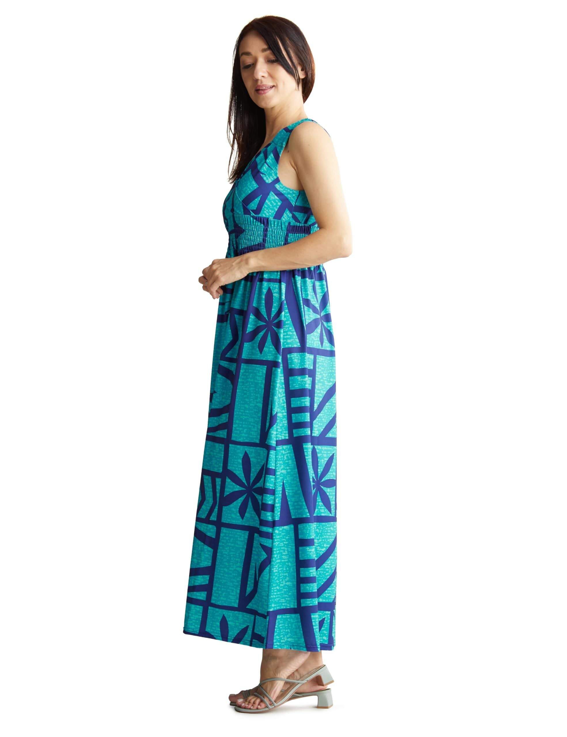 [マウナロア] カジュアルドレス Ocean Blue Bird モダンタトゥノースリーブドレス L BLUE レディース