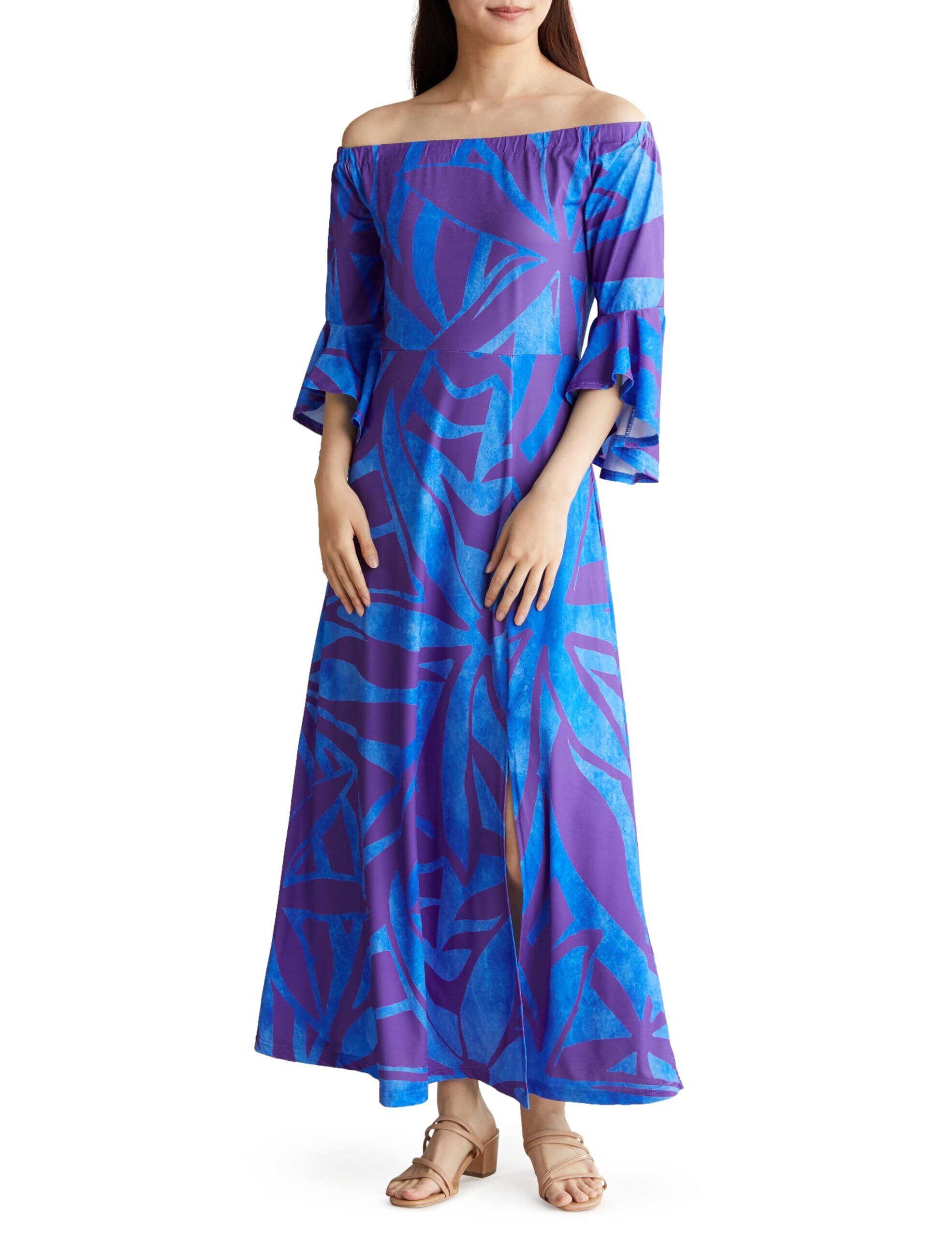 [マウナロア] カジュアルドレス Ocean Blue Bird ティアレタパスリーブワンピース M PURPLE レディース