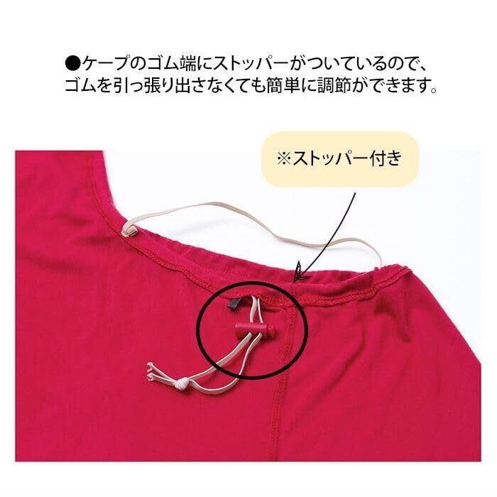 ケープのゴムの通し口にはストッパーがついているので、お好みのネックラインに調節可能