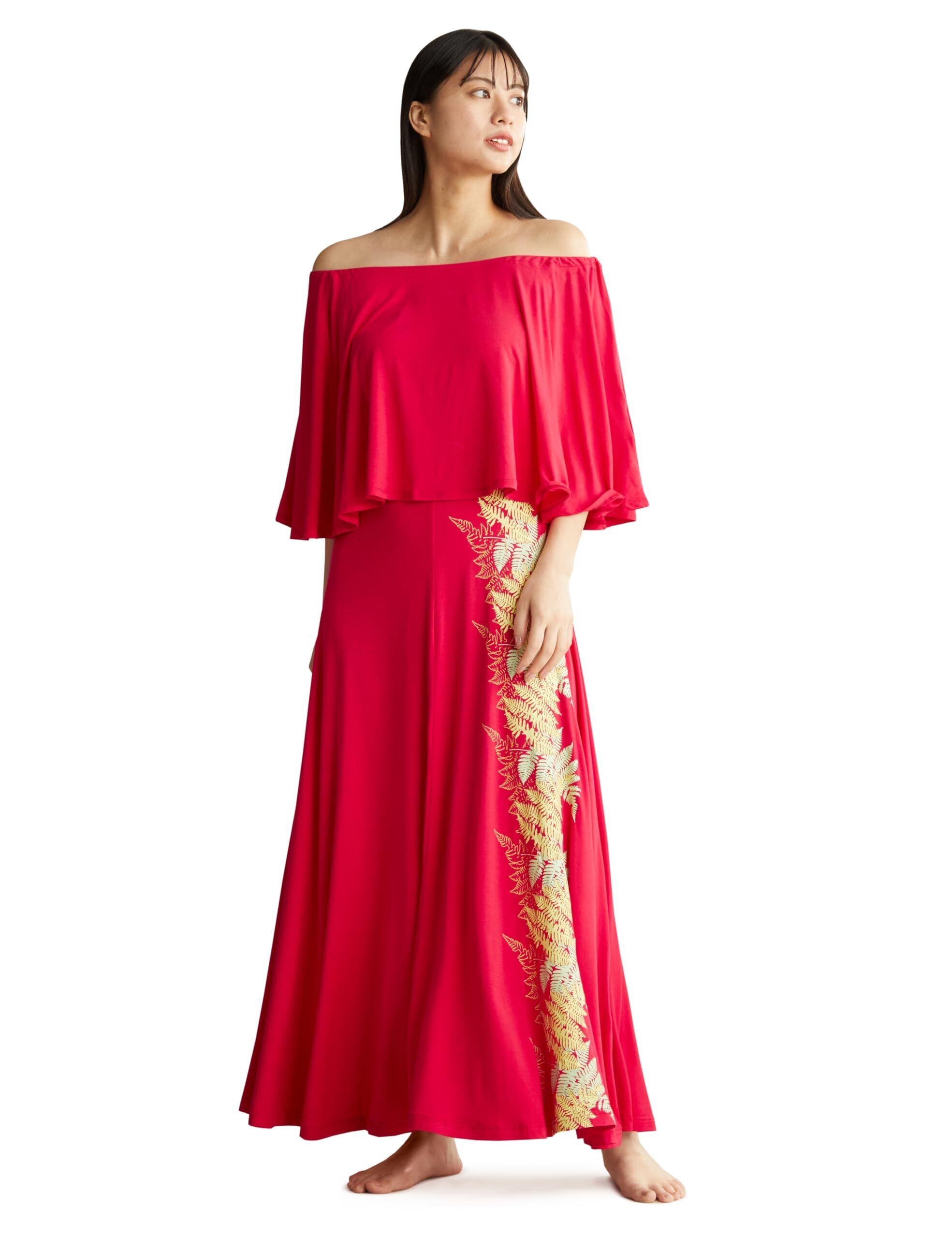 神秘的なシダ柄を合わせたストレッチ素材のドレスでハワイのスピリットを感じながら最高のステージを