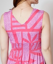 カシュクールの上半身がすっきりと美しいシルエット。切替えにより胸元が広がりすぎず程よく安定したVネックに仕上がります。高めのウエスト切替えでスタイルアップ。程よいフレア感で動きやすく上品なデザインです。足下からの着脱が可能です。メイクやヘアスタイルを崩しません。「モダンタトゥ」洗練された現代のポリネシアンカルチャーを感じさせるトライバルグラフィック。力強いイメージのタトゥ柄をクールに、大胆に、またどこかやわらかみさ感じるデザインで表現しました。色使いの美しさとティアレの存在感が印象的。
