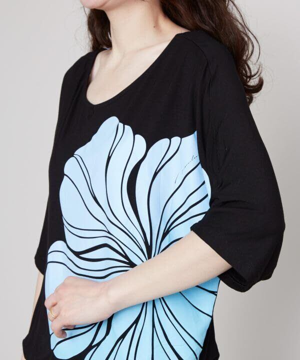 やわらかいグラデーションをまとい魅惑的なハイビスカスを表現。デコルテを美しく見せてくれるボートネックで、前後2wayで着用可能。ゆったりとしたドルマンスリーブは気になる二の腕もカバーしてくれます。レーヨン素材で落ち感が良く、伸縮性があるのでリラックスしつつも女性らしいラインの美しいシルエットです。