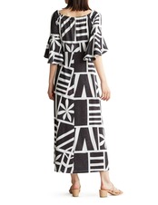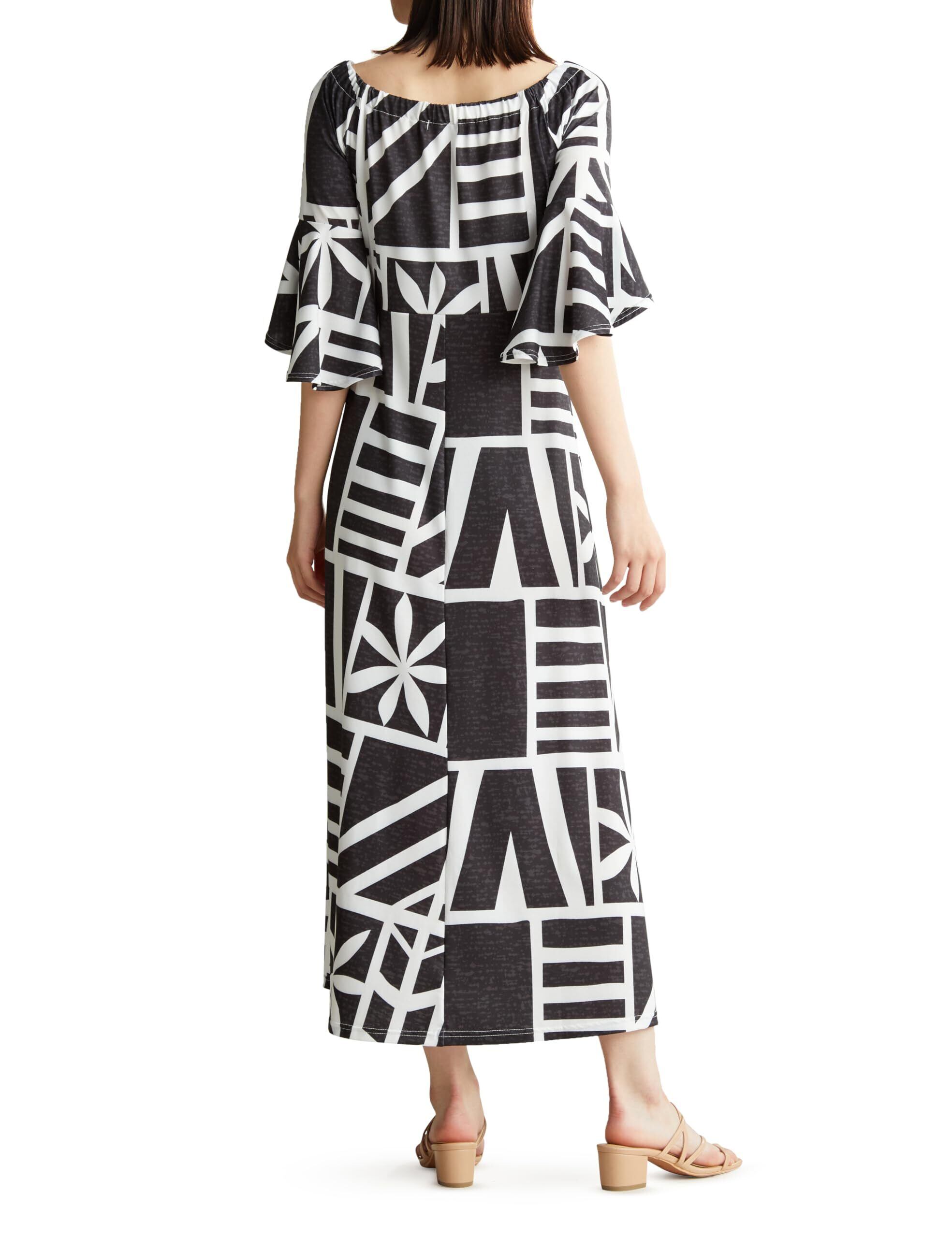 オンショルダー、オフショルダーでご着用いただけます。優雅に揺れる袖のベルスリーブが印象的でトレンド感あるデザイン。バスト下の高めの切替えでスタイルアップ。膝上までの程よいスリットが女性らしいスタイル。足下からの着脱が可能です。メイクやヘアスタイルを崩しません。「モダンタトゥ」洗練された現代のポリネシアンカルチャーを感じさせるトライバルグラフィック。力強いイメージのタトゥ柄をクールに、大胆に、またどこかやわらかみさ感じるデザインで表現しました。色使いの美しさとティアレの存在感が印象的。