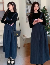 [RIRIOA] ジャンパースカート サロペット 大きいサイズ ゆったり 体型カバー ロング スカート レディース