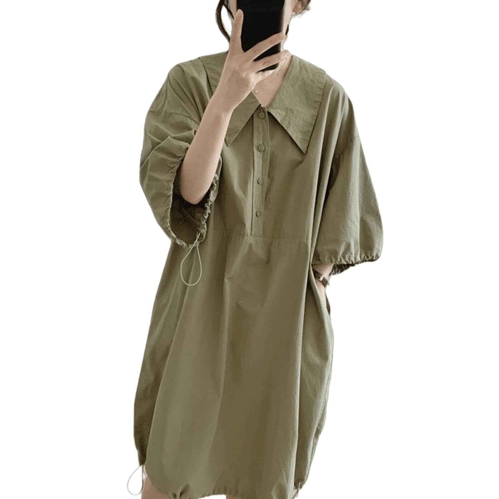 [MERONOCALLALY] ロング ワンピース レディース ゆったりとした 五分袖 無地 体型カバー 膝丈 通気 薄手 柔らかい カジュアル 日常着 秋 夏