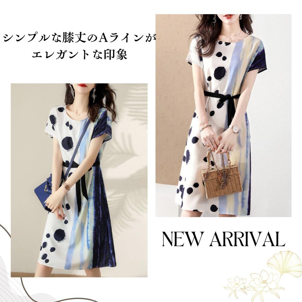 [UQQA] アシンメトリー ワンピース レディース 夏 半袖 ウエストリボン パステルカラー