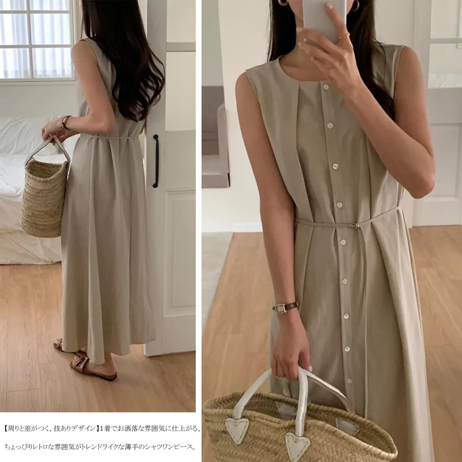 [CCGGOWMM] レディース ロングワンピース ドレス チュニック シャツ ワンピース ベルト付き チョッキ ワンピース スリップ 丸襟 無地 カジュアル ファッション 薄手 半袖 きれいめ マキシ丈 体型カバー 着痩せ 普段着 通勤 春夏