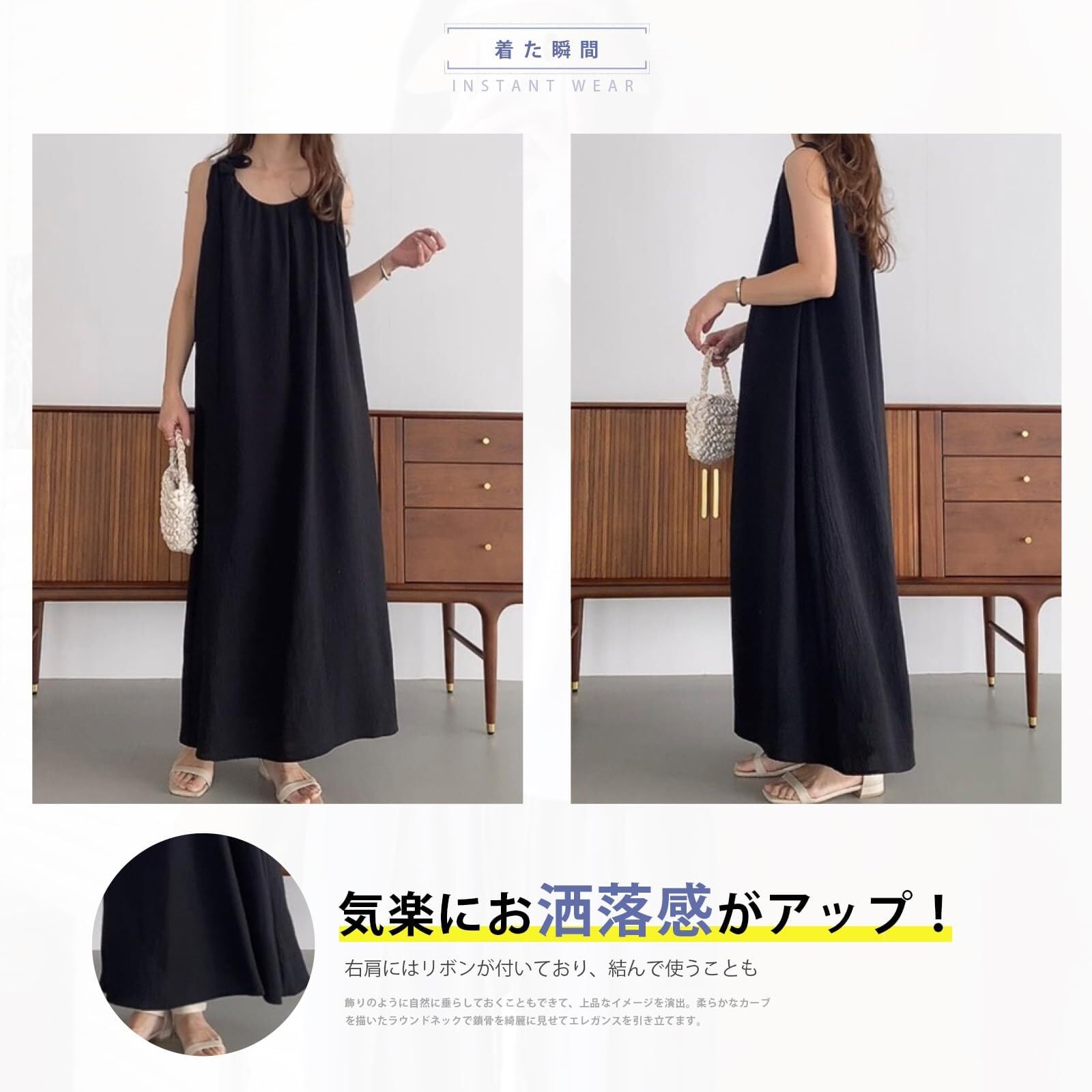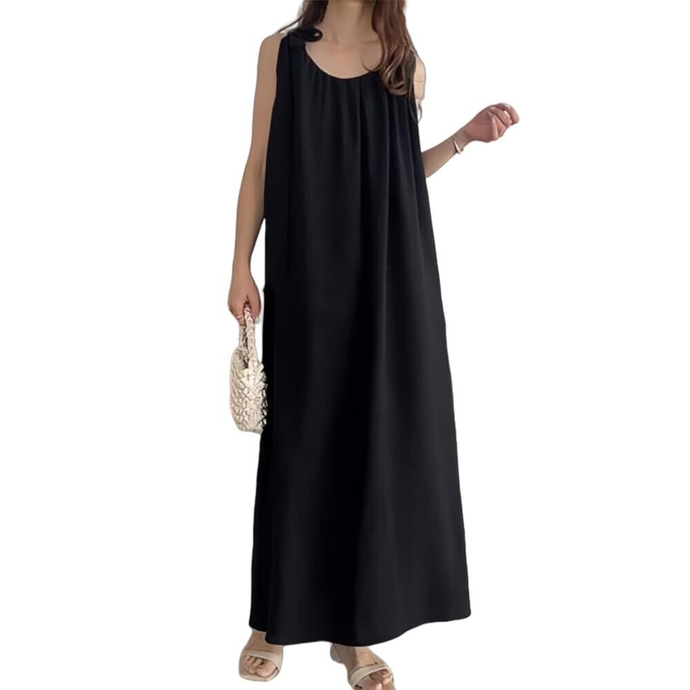 [Gdnelhuonox] ワンピース レディース サイドリボン ノースリーブ マキシ丈 大きいサイズ カジュアル きれいめ ゆったり ロング 着痩せ 体型カバー 旅行 お出かけ 無地 春 夏