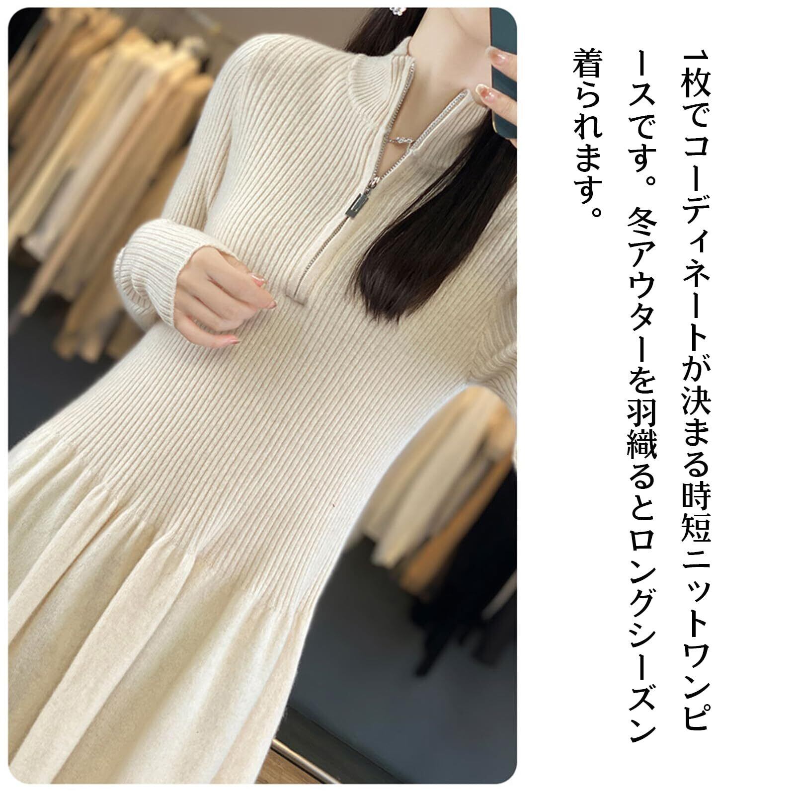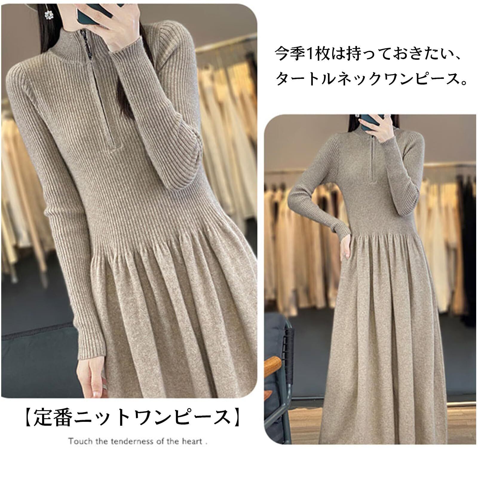 [MSFQSNB] ワンピース レディース セーターワンピース タートルネック 前ジップ ニットワンピース Aライン 上品 カジュアル 体型カバー カットソーワンピース 着やせ エレガント 秋 冬 暖かい ロング丈 ワンピース