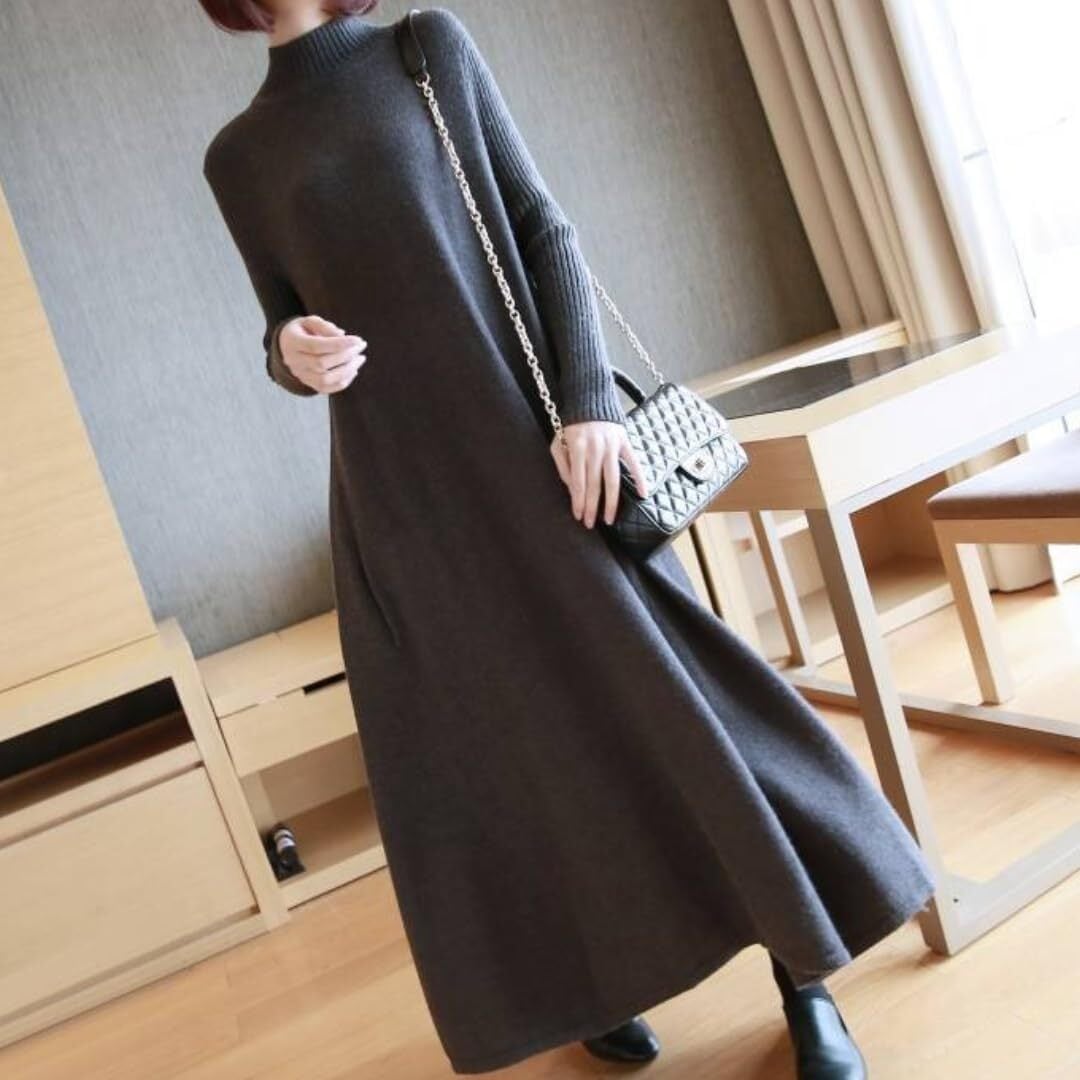 【2022最新】[VIVEL] 在庫限り ニットワンピース ロング 大きいサイズ レディース ワンピース 黒 ゆったり マキシ丈 長袖 ニットロングワンピース マキシワンピース aラインワンピース 冬 春 ニットワンピース冬レディース | BOSSO