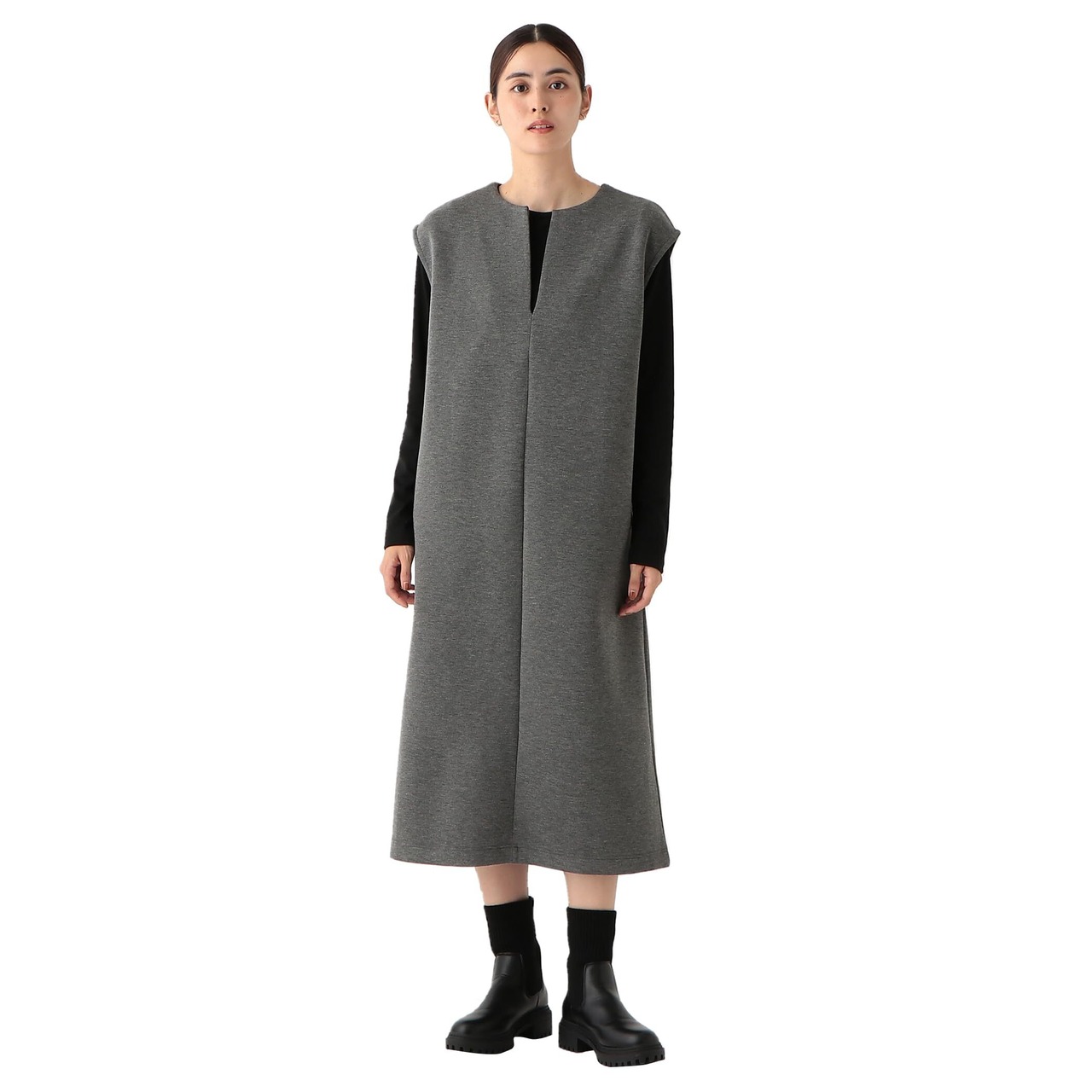 ジャンパースカートは後ろの裾にスリットを施しており、足さばきも快適。両脇にポケットを搭載することで、実用性もアップさせました。前後中心に入ったシームが縦のラインを強調し、すっきりとした印象で着こなせます。