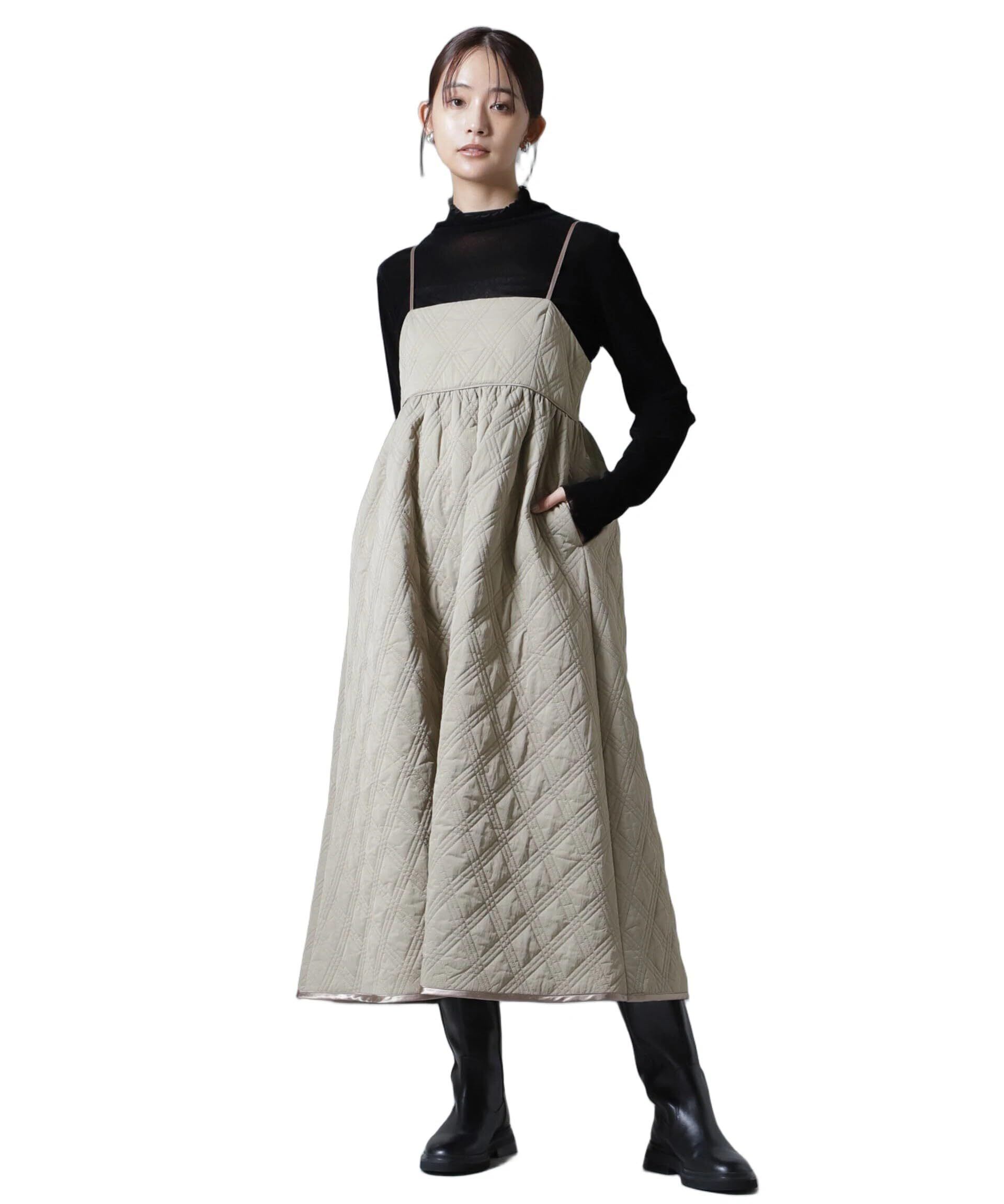 ・中綿キルトのふっくらとしたフォルムが特徴のキャミワンピース