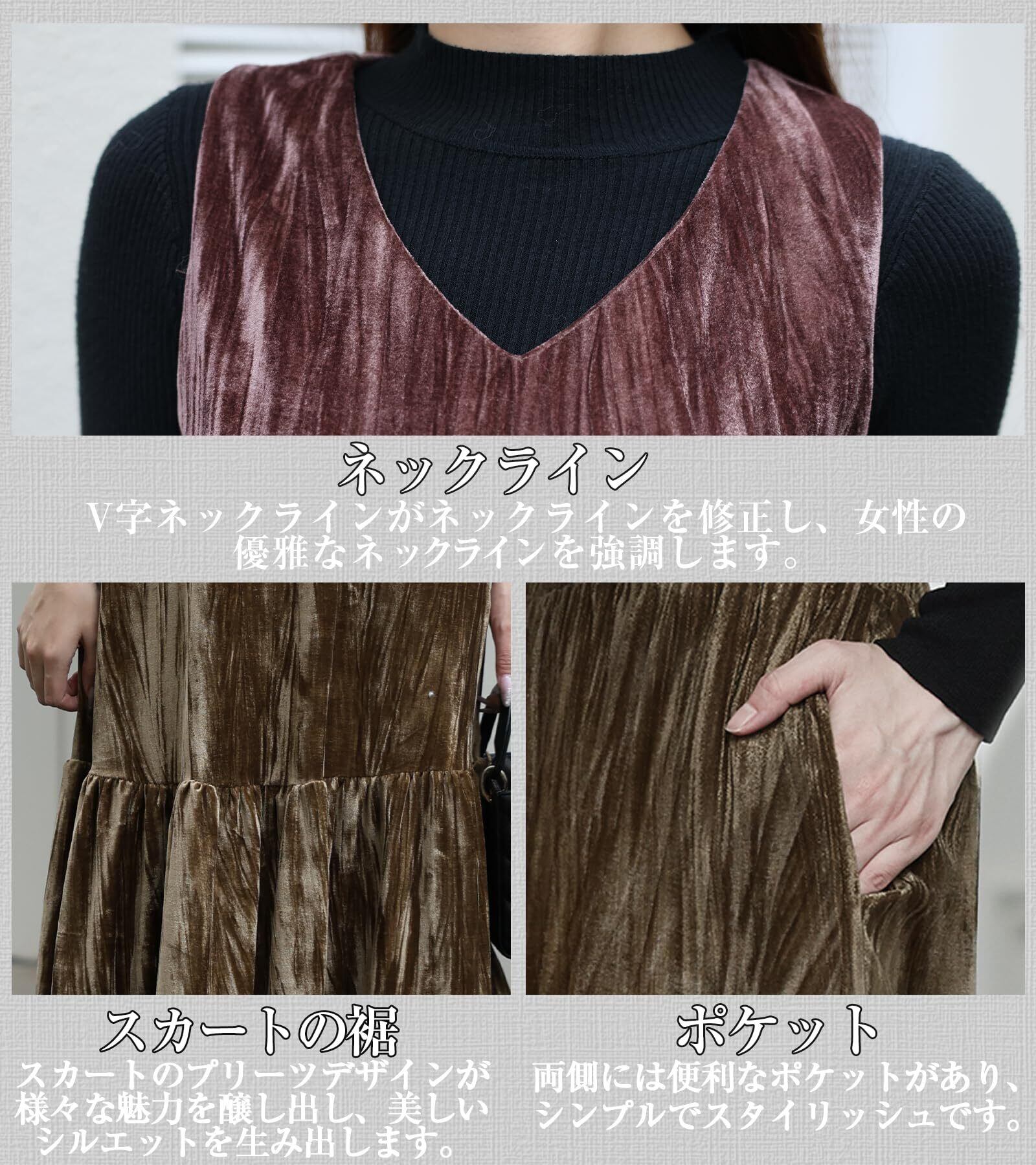 [SIPERLARI] ワンピース レディース ジュアルワンピース Vネック 着痩せ 可愛い ベルベット 無地 エレガント 体型カバー ポケット付き 春秋冬 パーティードレス ロングワンピース