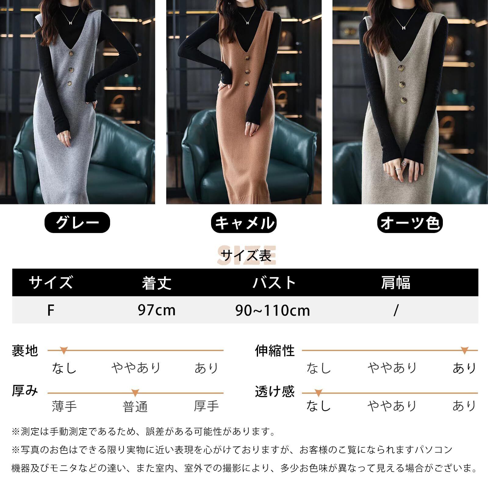 [7-livehouse] ニットワンピース レディース ノースリーブ ニットベスト ロングワンピース セーターワンピース ジャンパースカート Vネック 無地 重ね着 上品 着痩せ 体型カバー お出かけ カジュアル 春 秋 冬