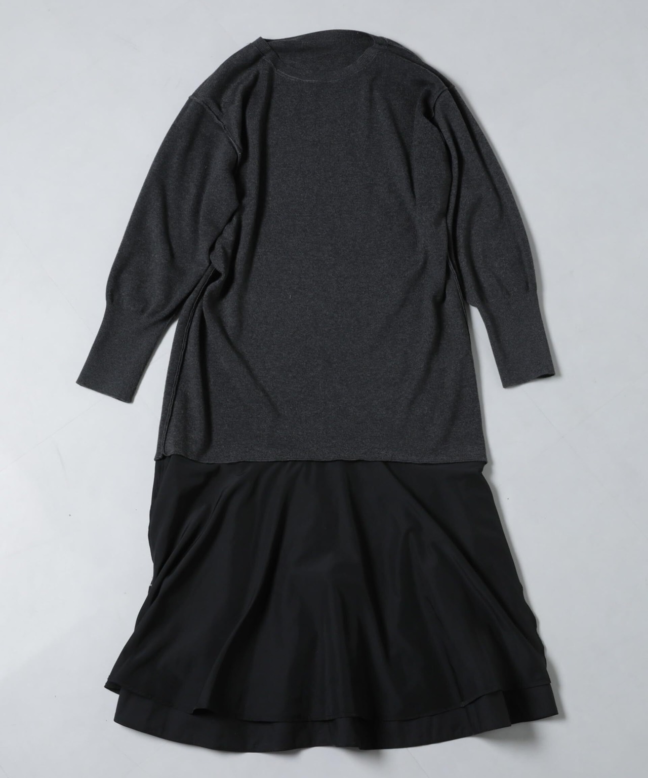 ニットとチュールスカートがドッキングしたロングワンピース。サラッと着ていただいても華やかな印象の一着なので、シューズや小物使いで幅広いシーンで活躍してくれます。
