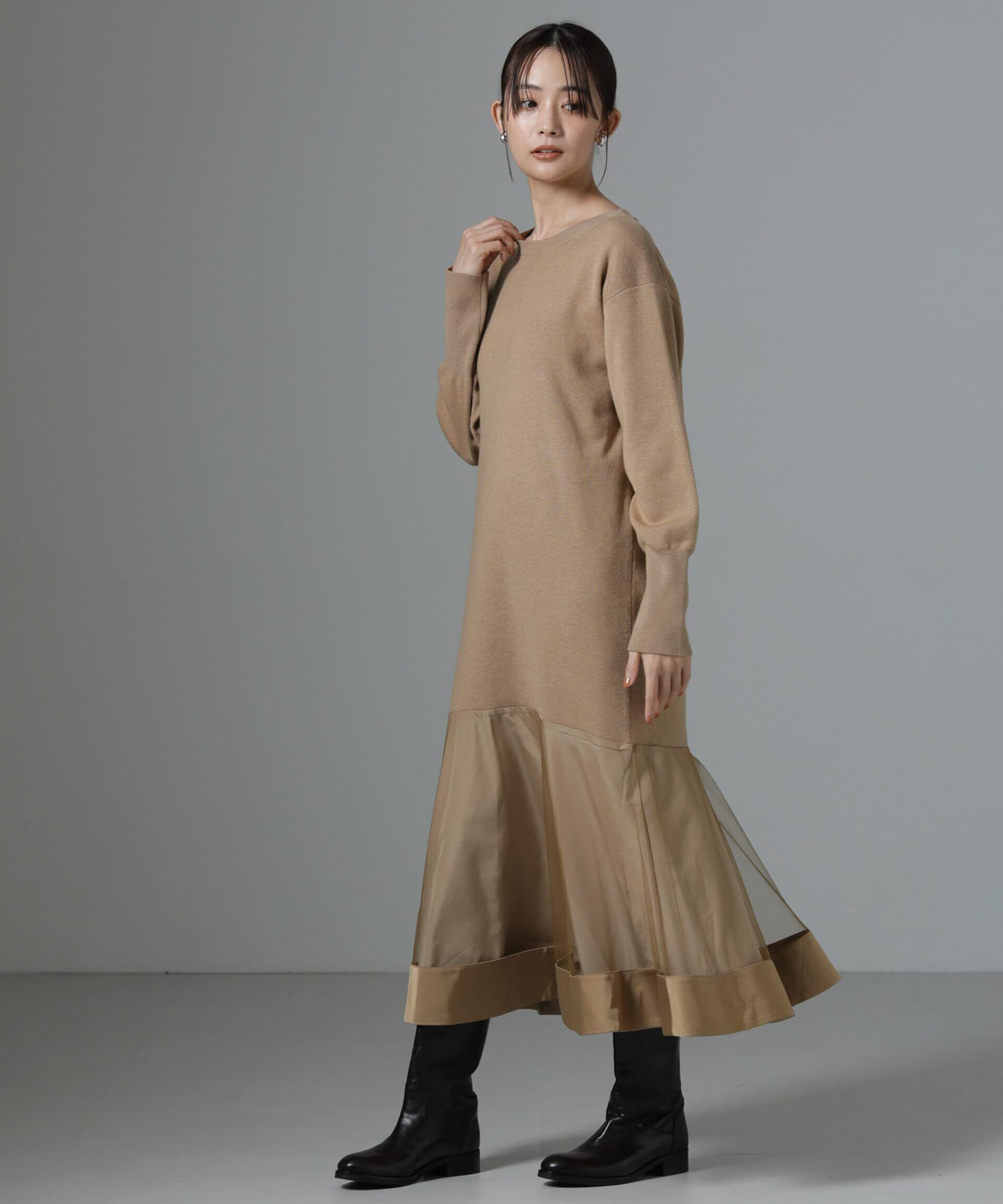 [ナノ・ユニバース] チュールスカート ドッキング ニット ワンピース レディース 669-4219343