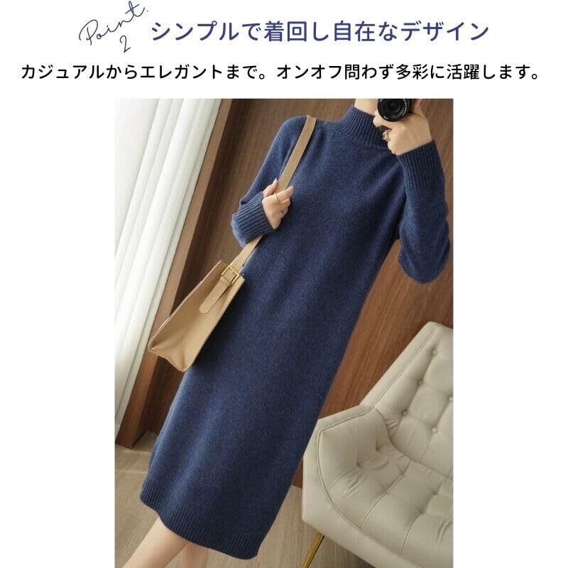 EMY-li ニットワンピース 長袖 ハイネック ひざ下丈 カジュアル 秋冬