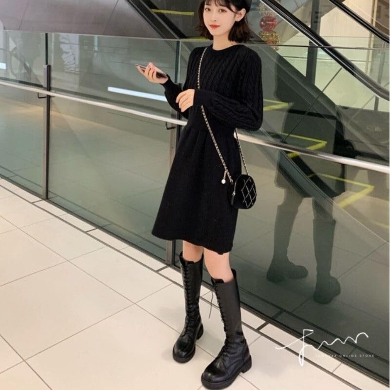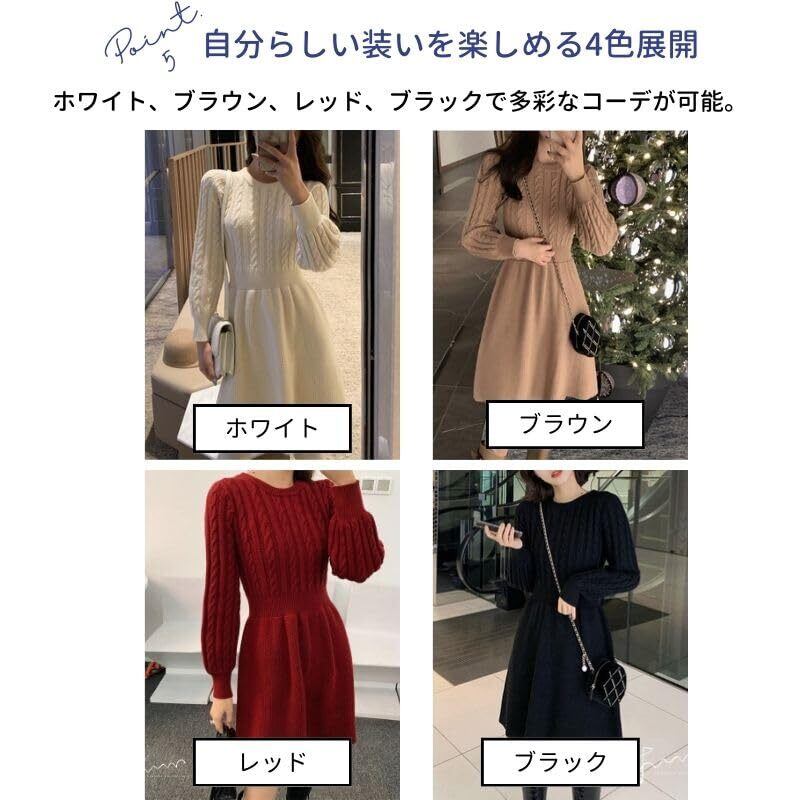 EMY-li ニットワンピース 長袖 ひざ上丈 丸首 カジュアル 秋冬