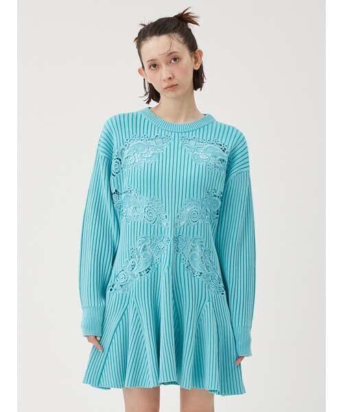 [ファーファー] レース刺繍ニットミニワンピース RWNO251086 レディース