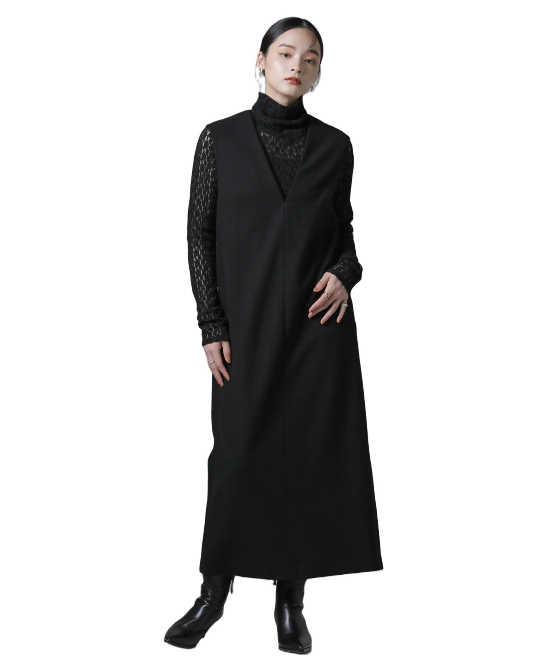 深めのVネックとスッキリしたIラインのシルエットが、大人っぽく女性らしさを惹き立てるワンピース。タートルニットや、カットソー、ブラウスなど、合わせるアイテムにより幅広い着こなしを楽しめそう。