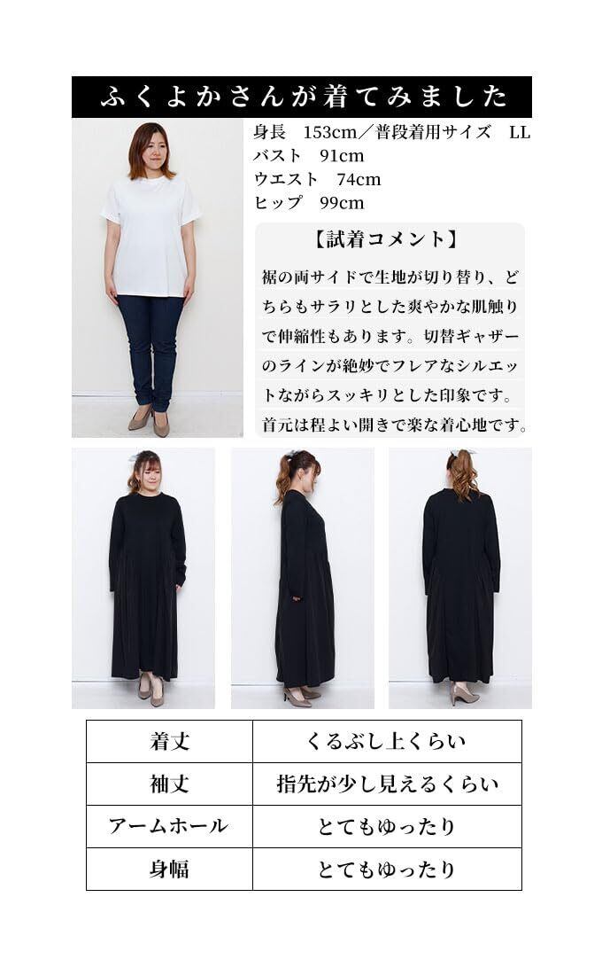 [sawa á la mode] 柔らかな 甘さ を 加える 異素材 ギャザー ワンピース レディース ファッション ワンピース 異素材 カットソー フレア ギャザー ロング 無地 大人可愛い