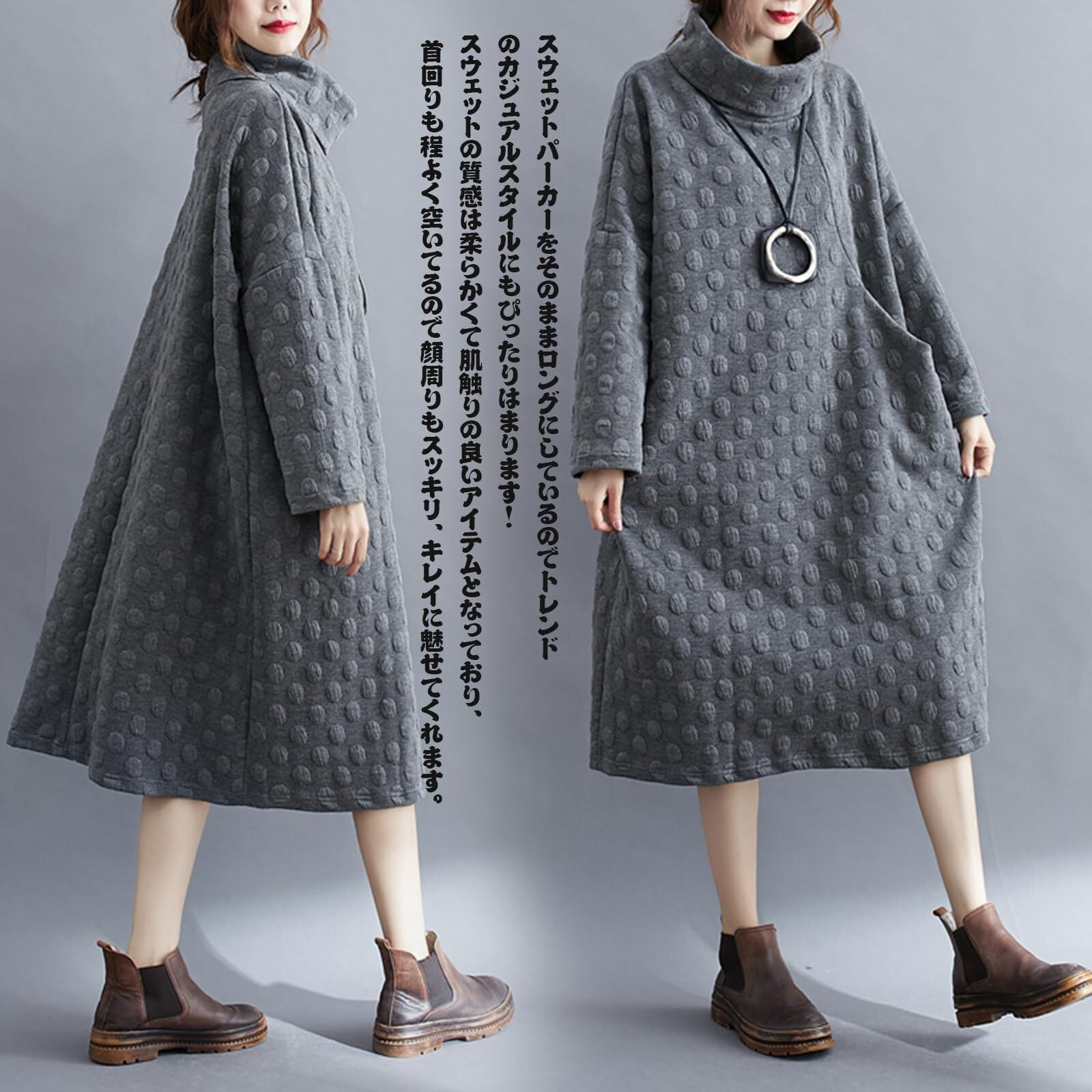 【新春セール】[CCGGOWMM] パーカー ワンピース レディース 長袖 ロングワンピース ハイネック ドット柄 レトロ ポケット付き aライン ワンピース 大きいサイズ きれいめ マキシ丈 カジュアル ファッション 体型カバー ゆったり 着痩せ 普段着 通勤 春 秋冬 | BOSSO