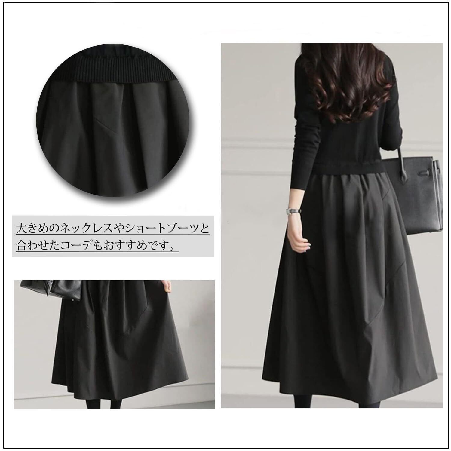 【商品詳細】 ベーシックで合わせやすいパッチワークワンピース ふんわりと揺れるロングスカートが大人の女性らしさを演出します。ブラックとクラシックなグレーのチェック柄は、コットンジャケットと合わせても、単独で着用しても非常に芸術的です。 シンプルなトーンなので、ロングネックレス、チョーカー、イヤリング、ピアス、ブレスレット、ブレスレット、サングラス、ショルダーバッグ、ファー小物、ヘアアクセサリーなどの小物やアクセサリーも合わせやすく、高級感のあるおしゃれな印象に仕上がります。