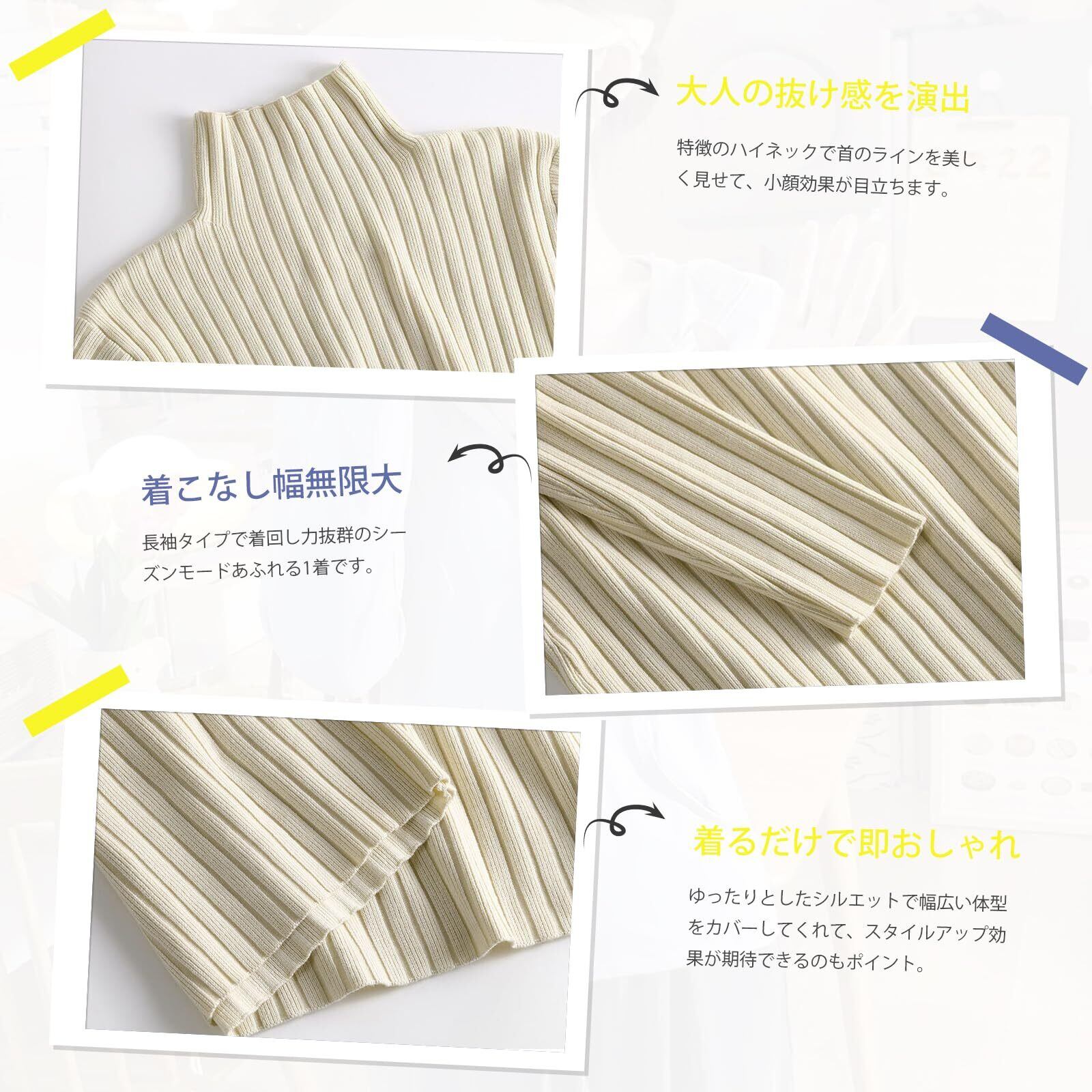 【エレガントなデザインと洗練されたディテール】シンプルながら優美なハイネックデザインが特徴で、首元をすっきりと見せつつ、上品な気品を演出します。ストレートシルエットは自然なドレープ感でやわらかなラインを描き、体型の気になる部分をさりげなくカバー。袖口と裾には緻密なステッチが施され、伸縮性のある素材が腕や脚に優しくフィットしながら快適な着心地を提供します。縦リブ編みのディテールが視覚的な奥行きを与え、スタイルアップ効果も抜群。シンプルでありながら、一枚で魅力を放つ特別な一着です。
