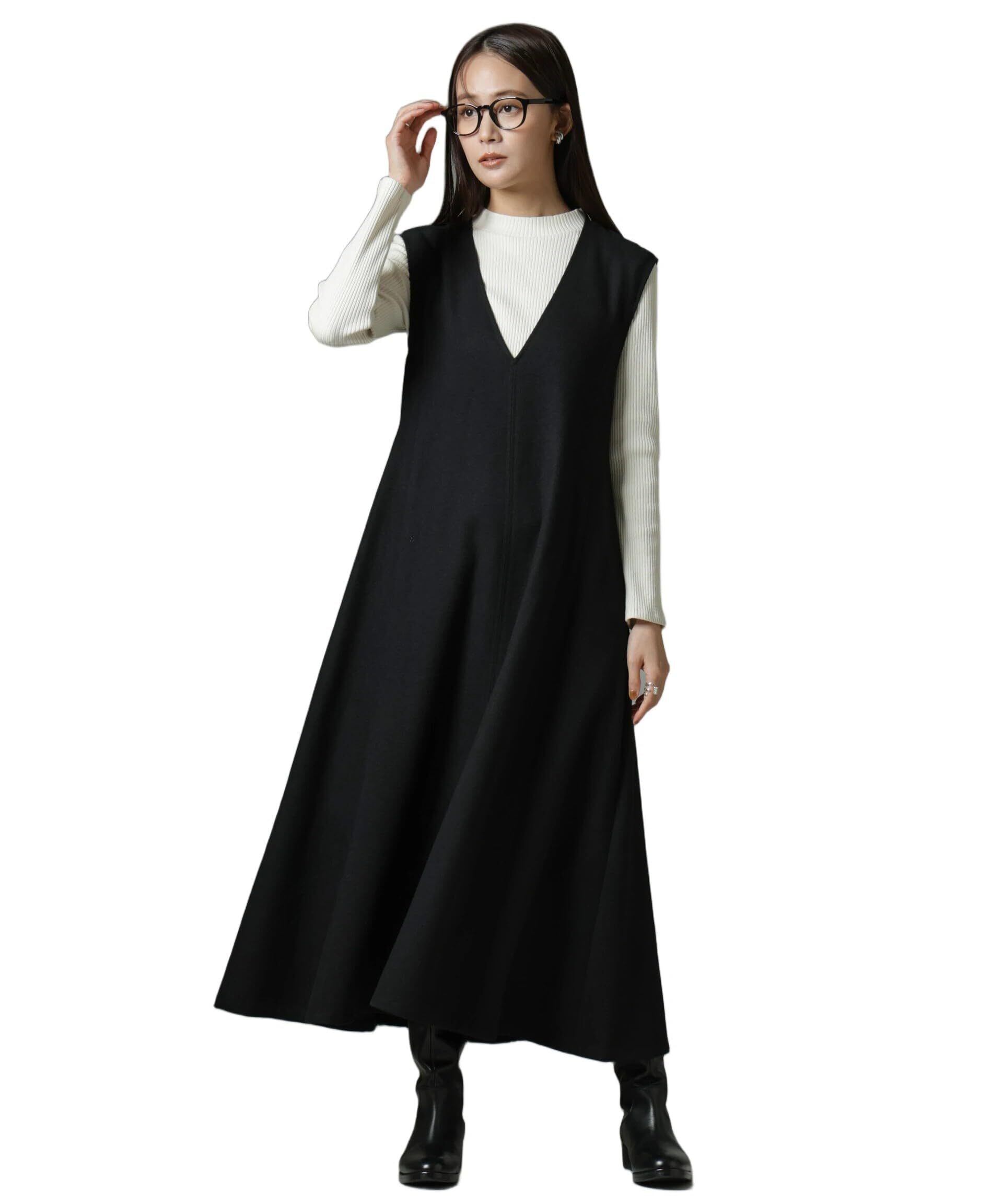 中に合わせるインナーしだいでロングシーズン着回せるワンピース。レイヤードのコーディネートで着回しが効き、幅広い着こなしが楽しめる一枚。ブーツとも相性が良い着丈で、キレイ目にもカジュアルなスタイルにもおすすめです。