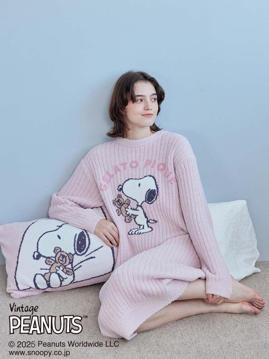 【ベアのぬいぐるみをぎゅっと抱きしめたスヌーピーのジャガードニットシリーズ】