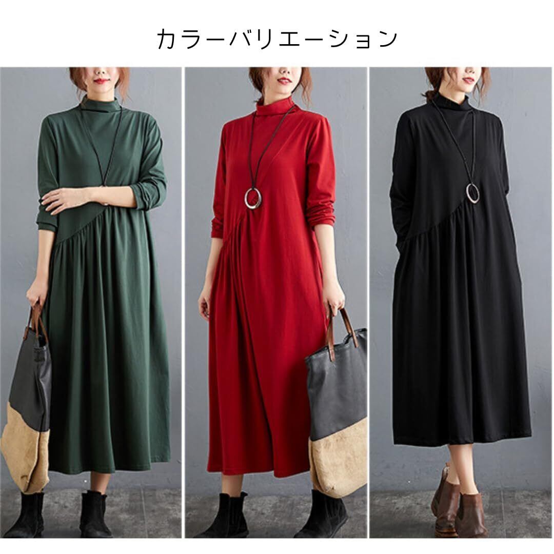 ロング ワンピース 体系隠し レディース フレア 長袖 ハーフネック 可愛い ふんわり 体型カバー 着痩せ 大きいサイズ ゆったり 普段着 快適 おしゃれ