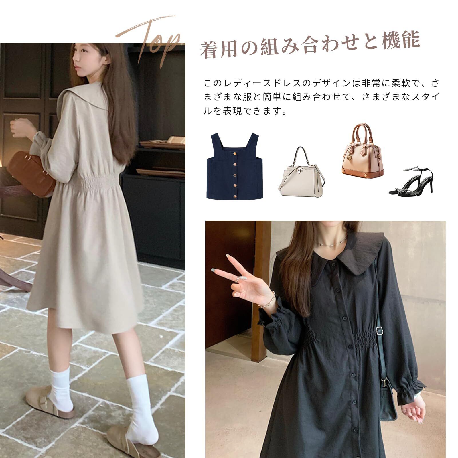【可愛い無地シャツワンピース】大人の女性に可愛い雰囲気を醸し出すワンピースです。古典的な人形の襟のデザインは、シャツのデザインによく使用される、かわいらしく、年齢を軽減し、行儀の良いファッション要素です。着ると首のカーブが修正できるので、可愛く見えて若く見えます。キャンパススタイルを着る人はドールカラーを着る人が多いです!色は主に無地です。デザイン的には前開きでボタン付き。全体的にはストレートでウエストから締めています。袖口は可愛いランタンスリーブで、優しくて品格のある感じがします。このバージョンのワンピースはタイトすぎず緩すぎず、かがんだりしゃがんだり外出したりしても窮屈に感じません。細部の処理に関しては、すべてのステッチとすべての糸が丁寧に縫製されています。例えば、ネックラインと裾の繊細なステッチ、内側の滑らかな処理など、すべて厳格な品質管理を反映しています。万能なブラックやファッショナブルなキャメルなど、さまざまな色からお選びいただけます。