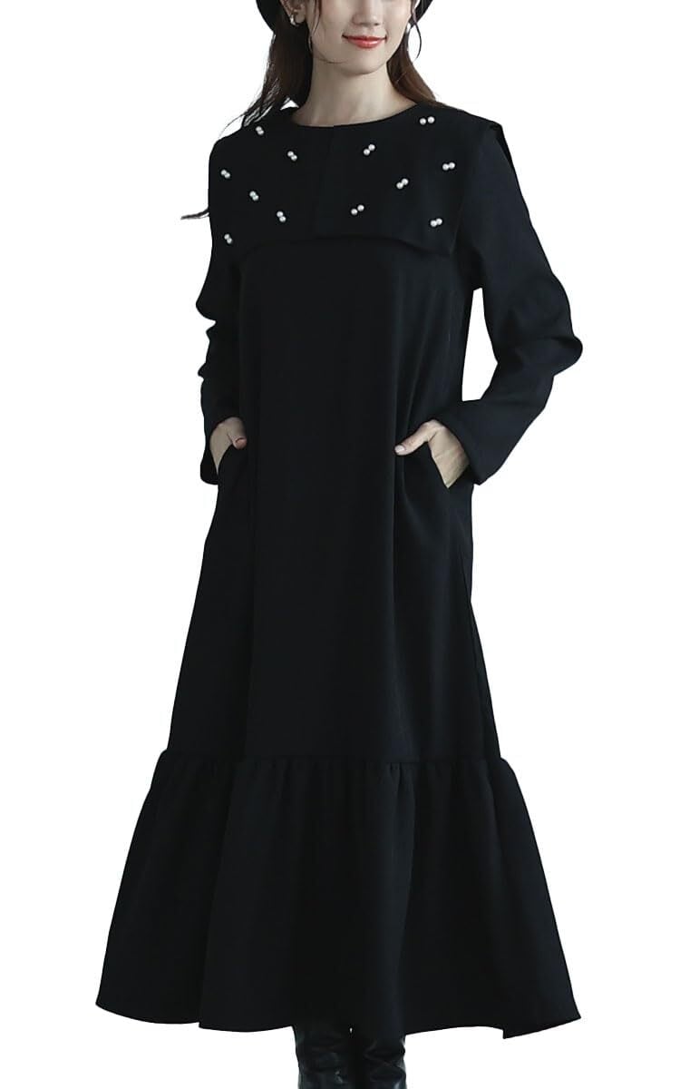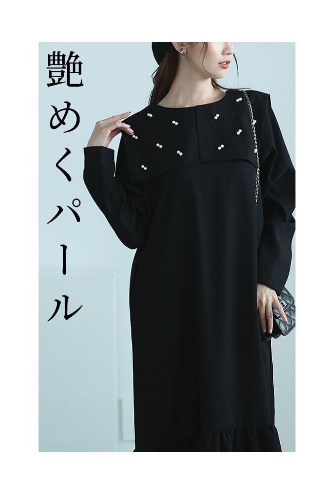 [sawa á la mode] パール の 粒 が 降り注 ぐエレガント な ビックカラー フレア ワンピース レディース ファッション ワンピース 大人可愛い