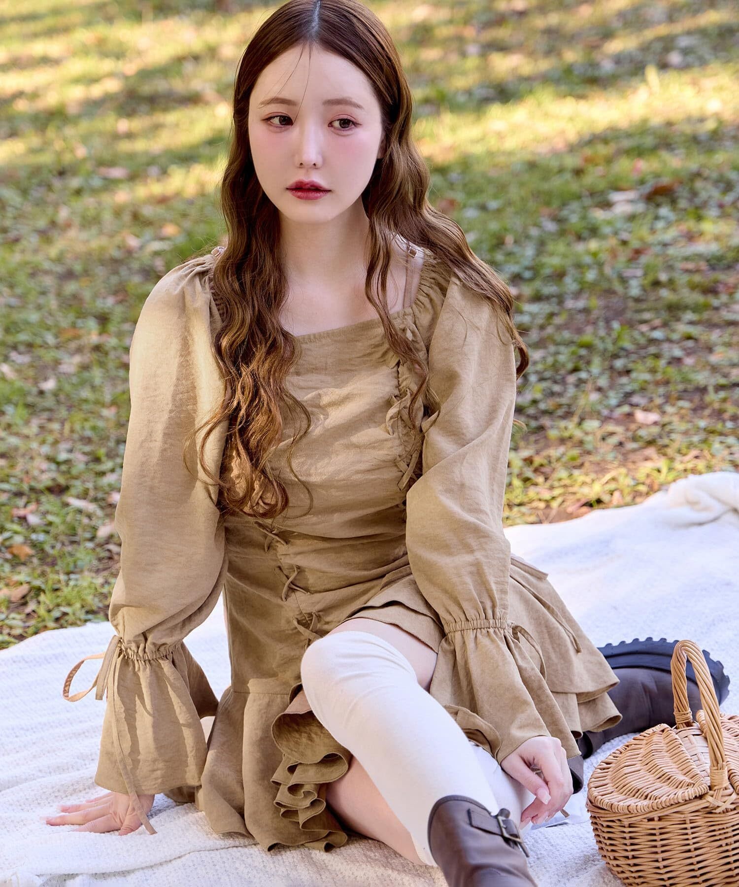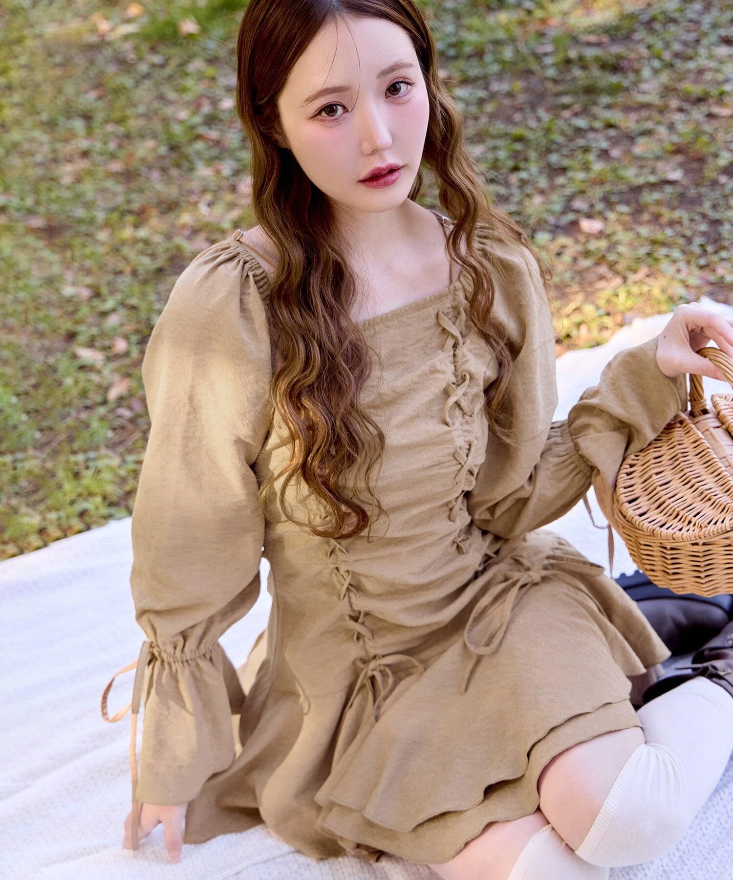 レースアップデザインでフロントもバックスタイルも どちらも着映えすること間違いなしのチュニックワンピース。 女性らしいラインを意識したシルエットに仕上げました。 袖口は華奢見えする細リボンのデザイン。 オフショルにもできるので気分によって雰囲気を変えられます◎ ボトムスと合わせるのはもちろん、一枚でも着られるアイテムです。