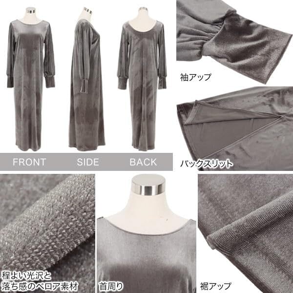 [神戸レタス] ベロア ワンピース ロングワンピース パフスリーブ バックオープン 上品 きれいめ ディナー [E3466]