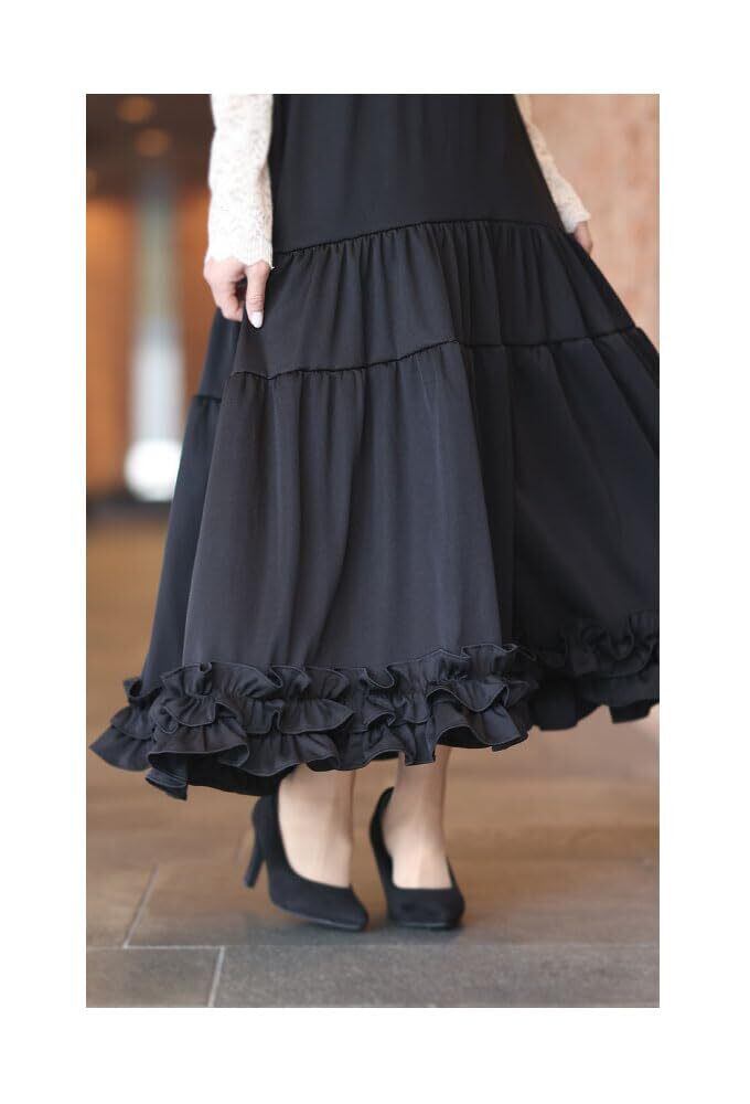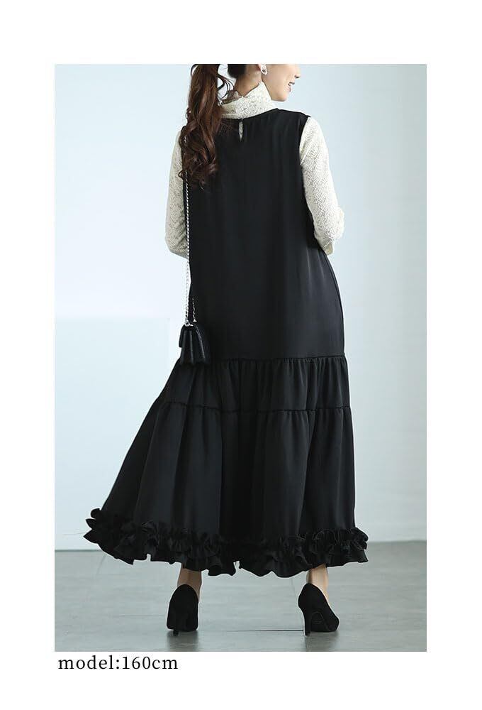 [sawa á la mode] ふんわり 揺れる たっぷり フリル の 裾 ティアード ワンピース レディース ファッション ワンピース ジャンパースカート 大人可愛い