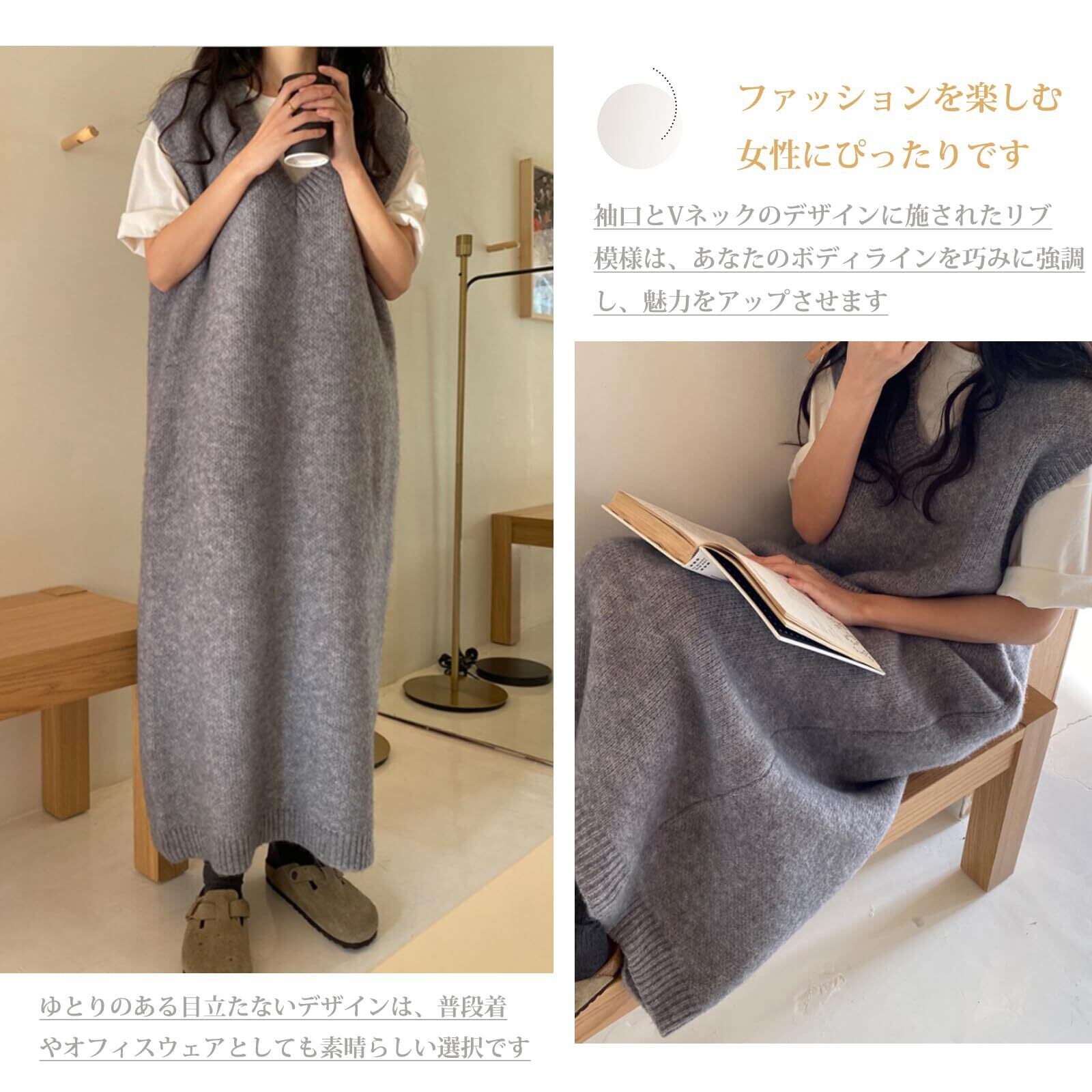 【2022最新】[NONELECEDOLE] ニットベスト レディース セーター ワンピース Vネック 無袖 ロング丈 ベスト シンプル 韓国 ファッション ゆったり 着痩せ 可愛い カジュアル 大人 通勤 春 秋 冬 | BOSSO