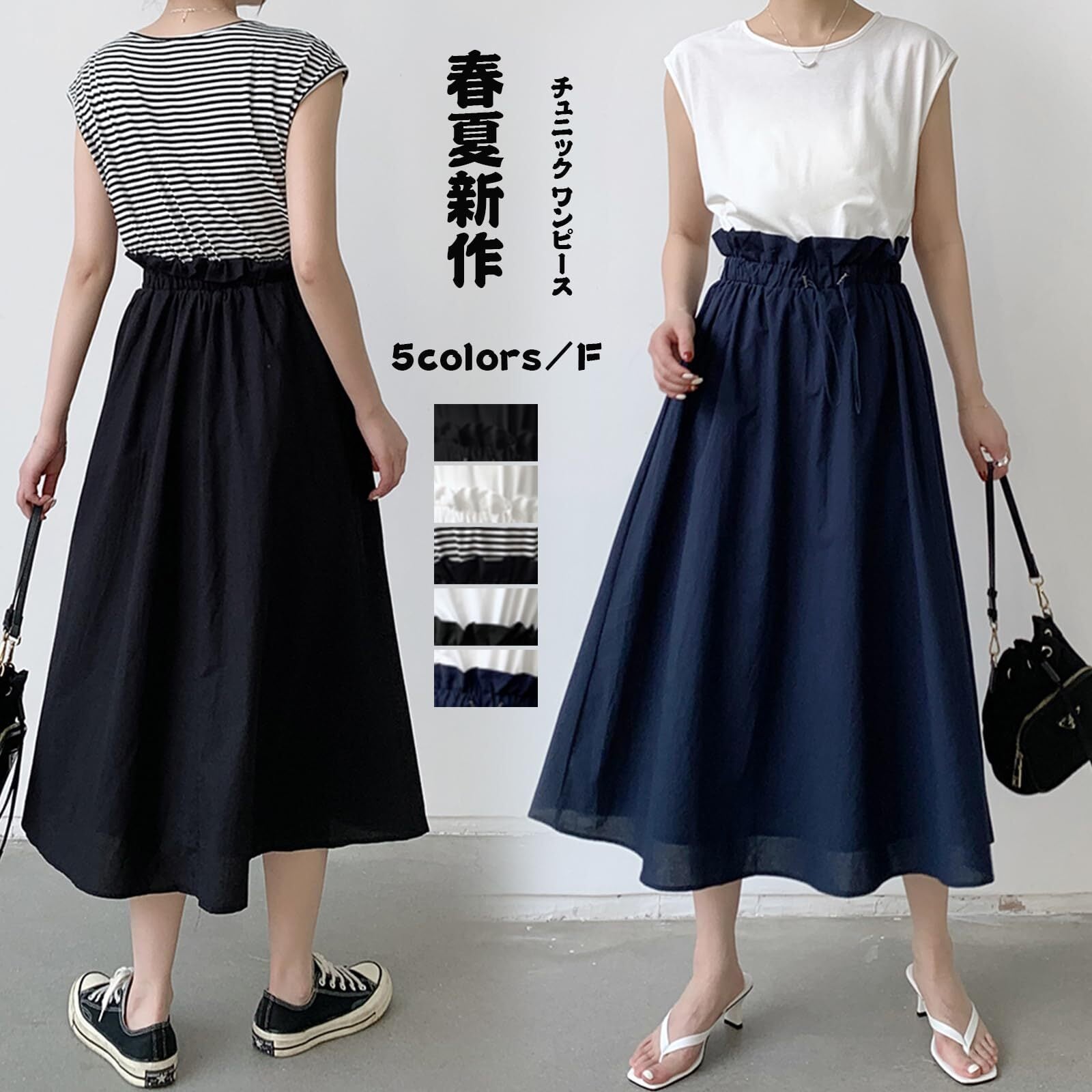 [JoccKorr] ワンピース レディース ロングワンピース 切り替え 半袖 チュニックワンピース ドレス ノースリーブ tシャツ ワンピース 丸襟 カジュアル きれいめ マキシ丈 体型カバー ファッション 普段着 通勤 春夏