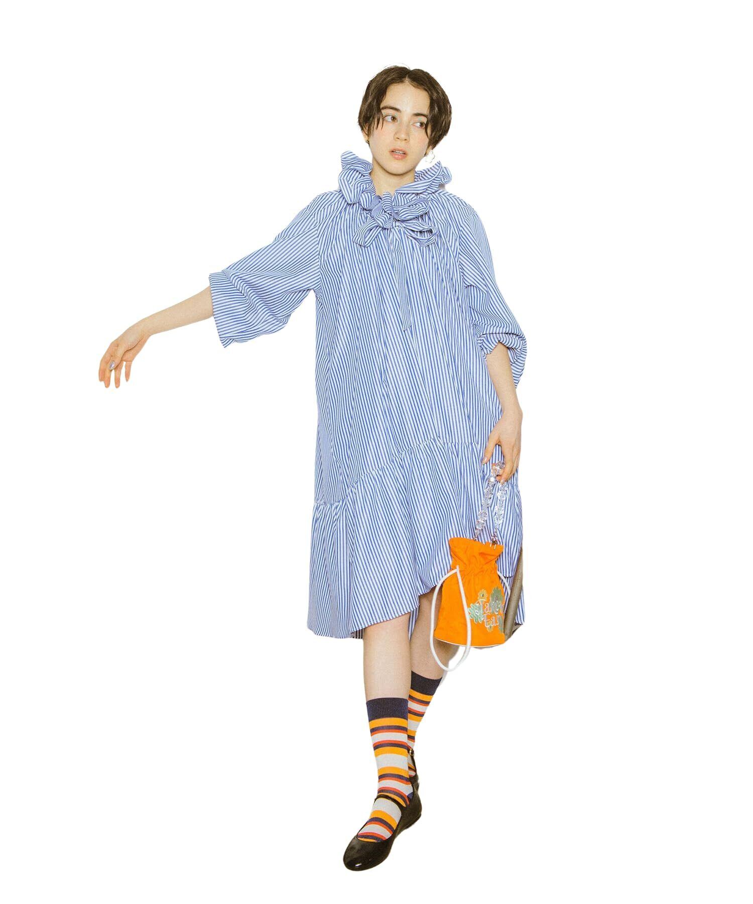 [Three Four Time] [スリーフォータイム]ギャザーフリルカラーフレアーワンピースレディース FREE