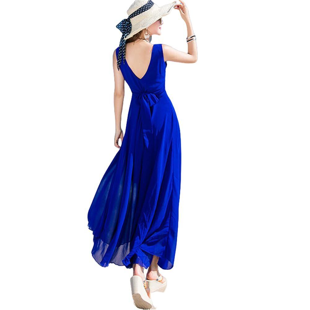 [ZOEMAKE] マキシワンピース ロング ドレス ワンピース ノースリーブ ボヘミアン リゾート ハワイアン サマー フレッシュ レディース ウェア